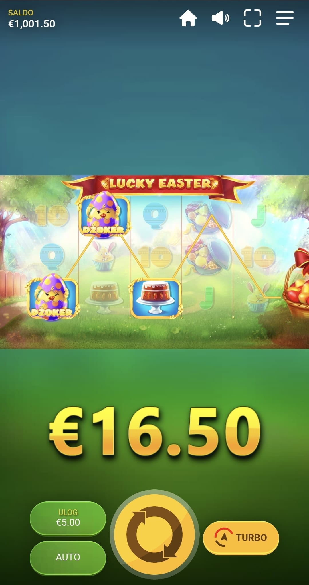 Bonus igra – Besplatne vrtnje: Ako dobijete 3 Scatter simbola "FREE SPINS" bilo gdje na valjcima, aktivirate Besplatne vrtnje. Prije početka vrtnji, birate jedno od ponuđenih uskršnjih jaja kako biste otkrili broj besplatnih vrtnji koje ste osvojili.