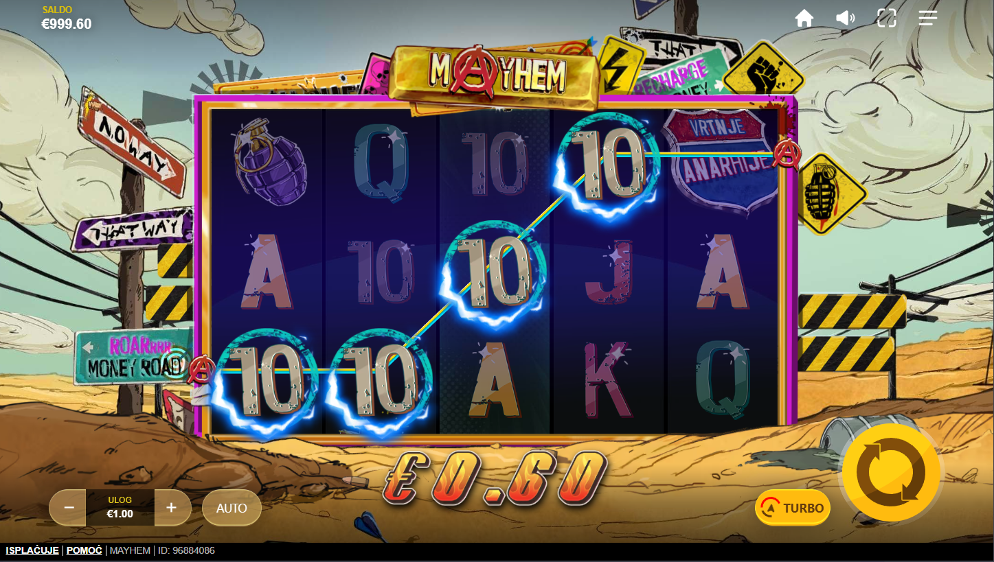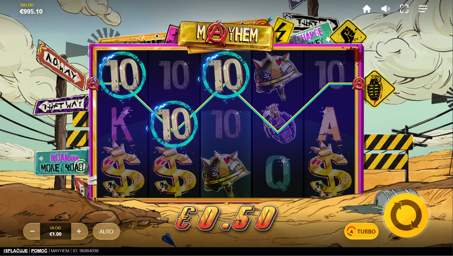 S RTP-om od 95.7% i srednje visokom volatilnošću, Mayhem pruža pravu ravnotežu između čestih manjih pogodaka i eksplozivnih iznenađenja. Maksimalni dobitak od 1200 puta uloga možda nije najveći na tržištu, ali zahvaljujući uzbudljivim značajkama igra se osjeća intenzivno i nagrađuje na spektakularan način.