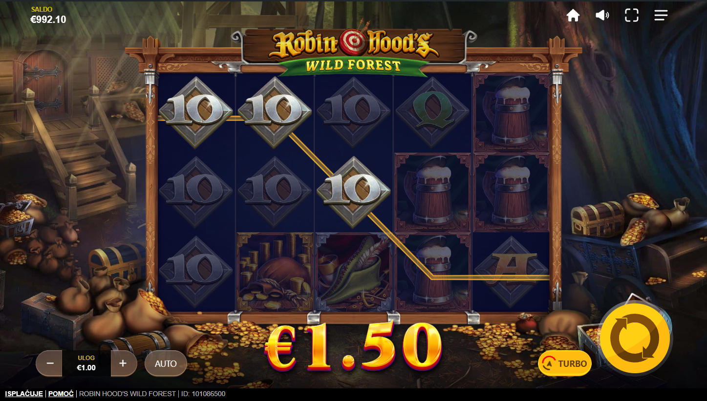 Odaberi ulog, zavrti valjke i prepusti se čaroliji šume. Likovi poput Maid Marian, Little Johna i samog Robina donose posebne značajke poput dodavanja Wild simbola, uklanjanja niskih simbola i lančanih reakcija. Bonus funkcije se mogu aktivirati nasumično, čineći svaku vrtnju uzbudljivom i nepredvidivom. Igra je jednostavna, ali prepuna iznenađenja, baš kao dobra legenda.