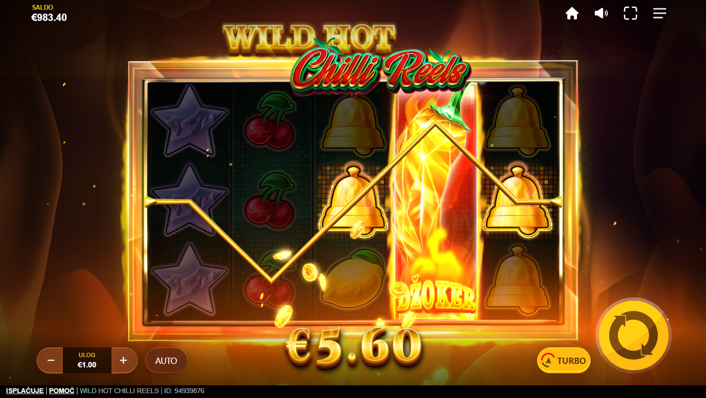 Zavrti kolutove i pazi na čili simbole jer kada se pojave, šire se po cijelom kolutu i zaključavaju ga. To aktivira respin, a s više čilija na ekranu tvoje šanse za dobitak rastu iz okreta u okret. Jednostavna mehanika, ali uzbudljiva kao prava vatra!