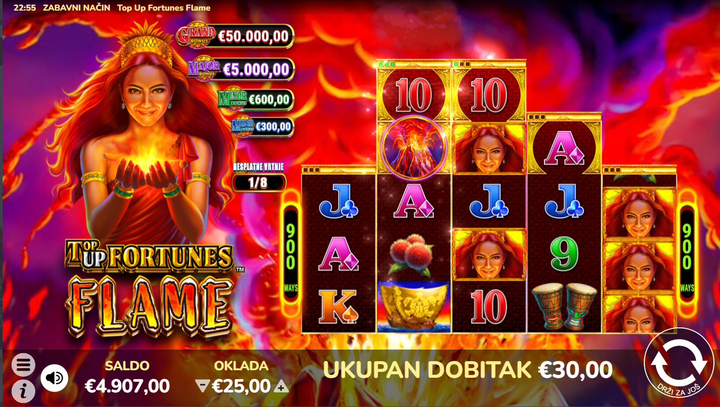 Top Up Fortunes Flames ima besplatne vrtnje!