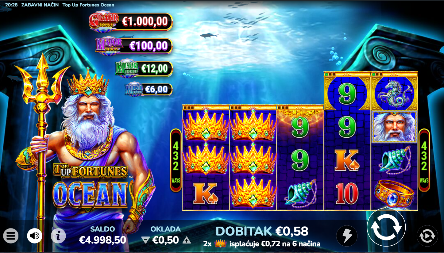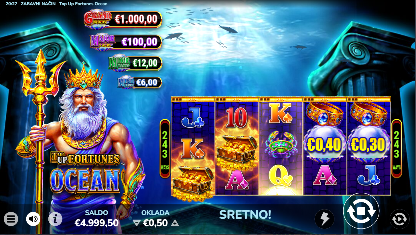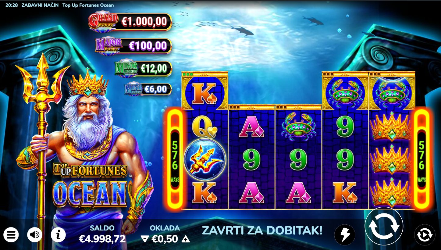 4. Koji su minimalni i maksimalni ulozi u igri Top Up Fortunes Ocean?
