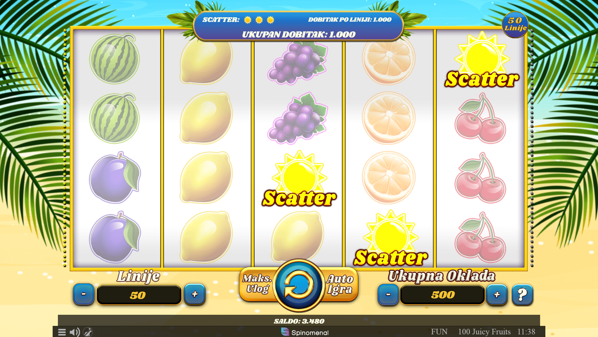 Igra 100 Juicy Fruits ima RTP u iznosu od 95.72%, što znači da igrači imaju dobre šanse za ostvariti dobitak. Volatilnost igre je srednja, što znači da igrači mogu očekivati česte, ali niže dobitke.