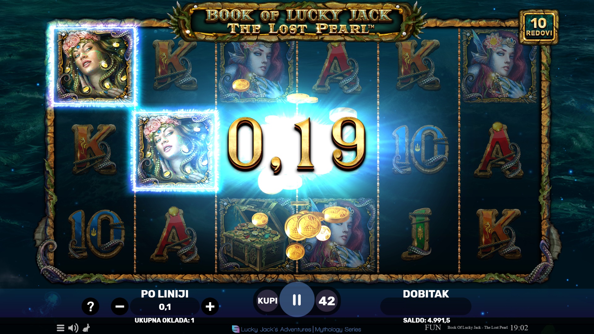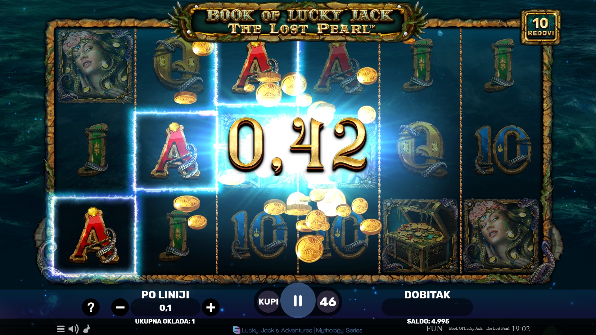 Book of Lucky Jack - The Lost Pearl vodi te u potragu za izgubljenim biserom kroz 10 fiksnih dobitnih linija. Ova slot igra nudi uzbudljivu avanturu s Wild simbolima koji također služe kao Scatteri. Kada se tri ili više Scatter Wild simbola pojave bilo gdje na bubnjevima, pokreće se značajka besplatnih vrtnji, donoseći do 500 puta veći dobitak od uloga. Tijekom besplatnih vrtnji, jedan simbol nasumično postaje proširujući, povećavajući šanse za dobitak. Iskusi magiju i neizvjesnost svakog okretanja i otkrij skrivena bogatstva s Lucky Jackom!
