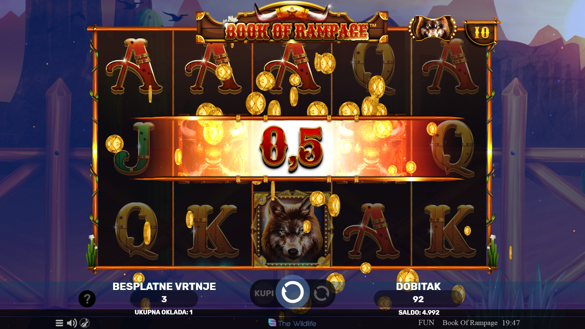 Gameplay u Book of Rampage je jednostavan i zabavan. S deset fiksnih linija i brojnim mogućnostima za dobitak, ova slot igra nudi uzbudljivo iskustvo. Wild simbol također služi kao scatter, donoseći 10 besplatnih vrtnji kad se pojavi tri ili više puta. Tijekom besplatnih vrtnji, poseban simbol se može proširiti, povećavajući tvoje šanse za dobitak. Isprobaj različite načine igre i iskoristi free spinove za dodatne šanse za dobitak.