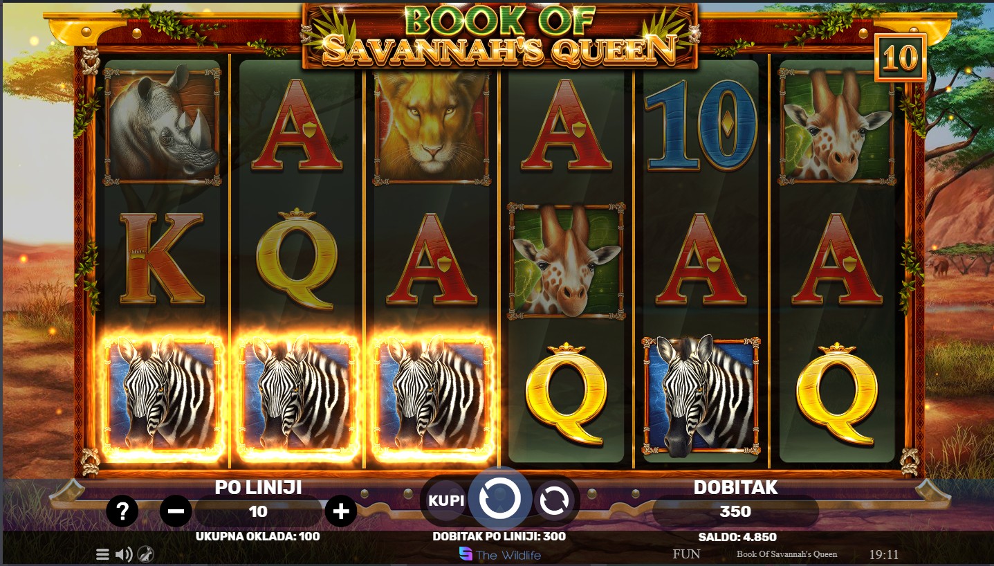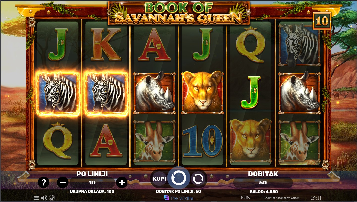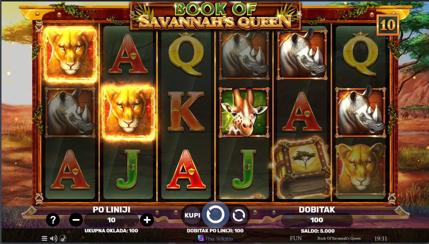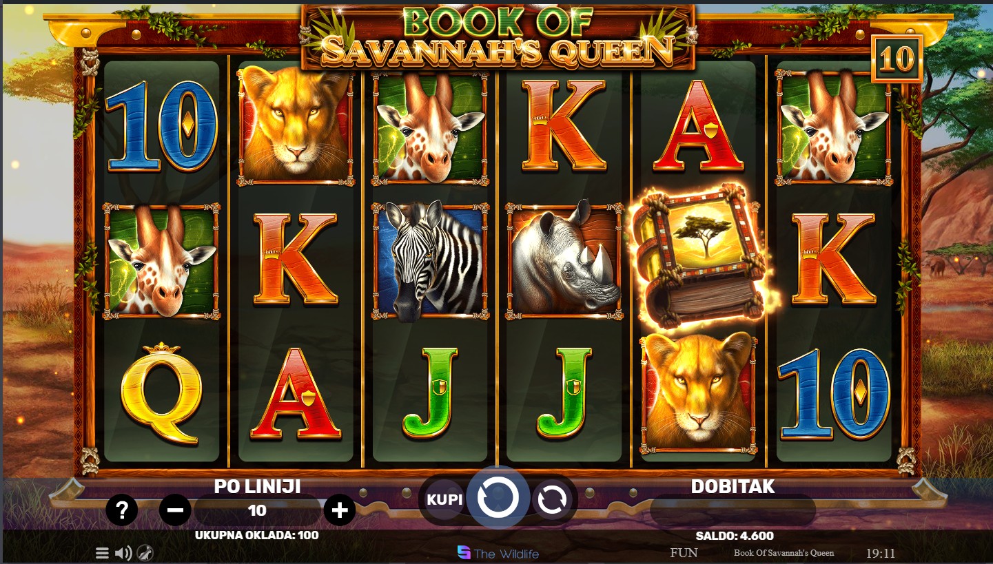 Zakorači u divljinu Afrike s Book of Savannah's Queen providera Spinomenal! Ova uzbudljiva slot igra vodi te kroz savanu, gdje kraljica divljine čuva svoje blago. Na 6 bubnjeva i 3 reda, Wild simboli djeluje i kao Scatter, dok besplatne vrtnje povećavaju tvoje šanse za velike dobitke. Svaka vrtnja donosi uzbuđenje i posebne funkcije koje mogu donijeti dodatne nagrade.