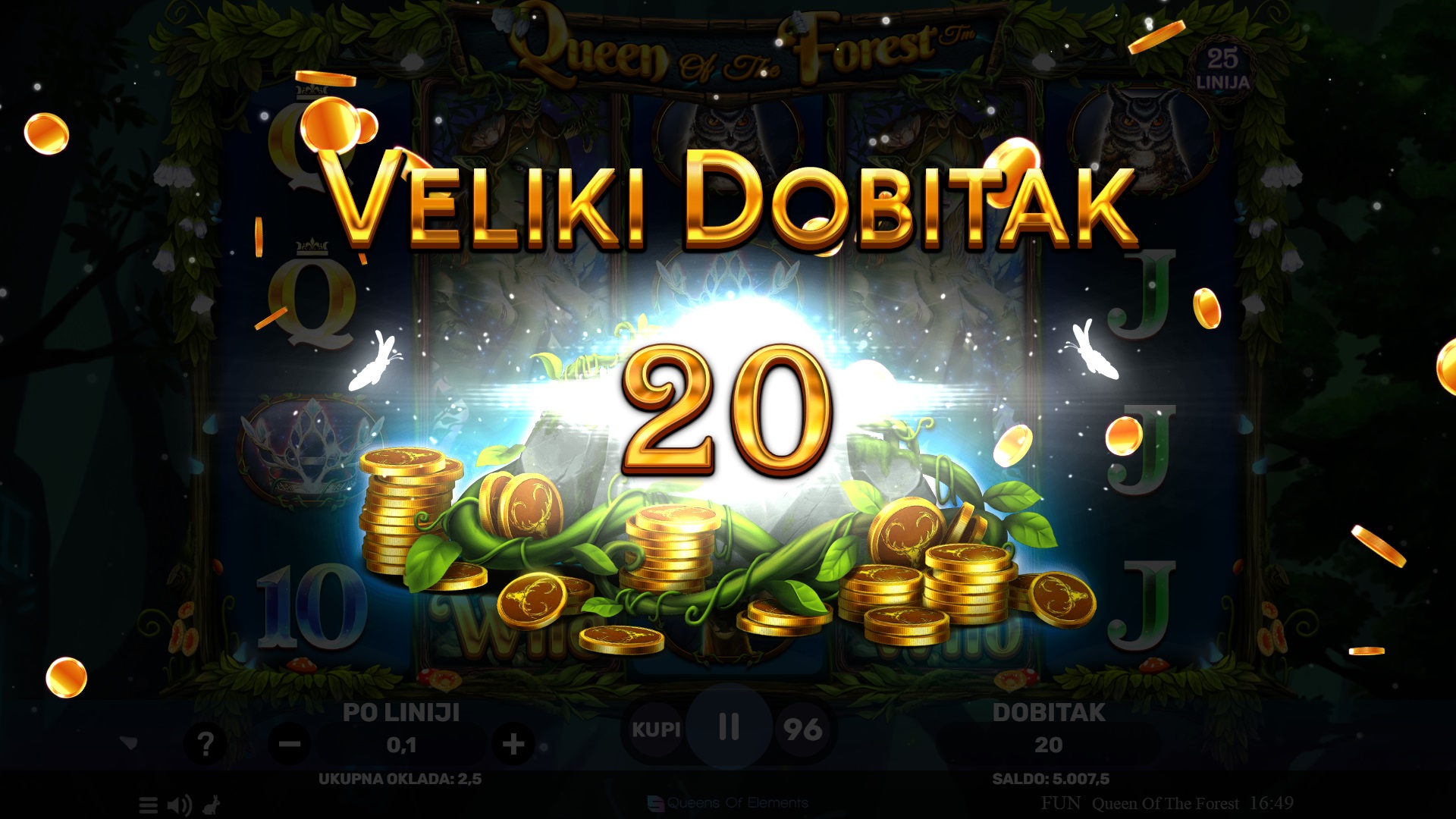 Queen of the Forest ima RTP (povrat igraču) od 95,89%, što znači da igra pruža dobre šanse za dobitak na duge staze. S umjerenom volatilnošću, ova igra balansira između manjih, češćih dobitaka i mogućnosti za velike nagrade. Ovaj balans čini igru uzbudljivom i privlačnom kako za početnike, tako i za iskusne igrače. Iskoristi sve što igra nudi – od besplatnih vrtnji do posebnih značajki – i okušaj sreću u ovoj magičnoj avanturi.