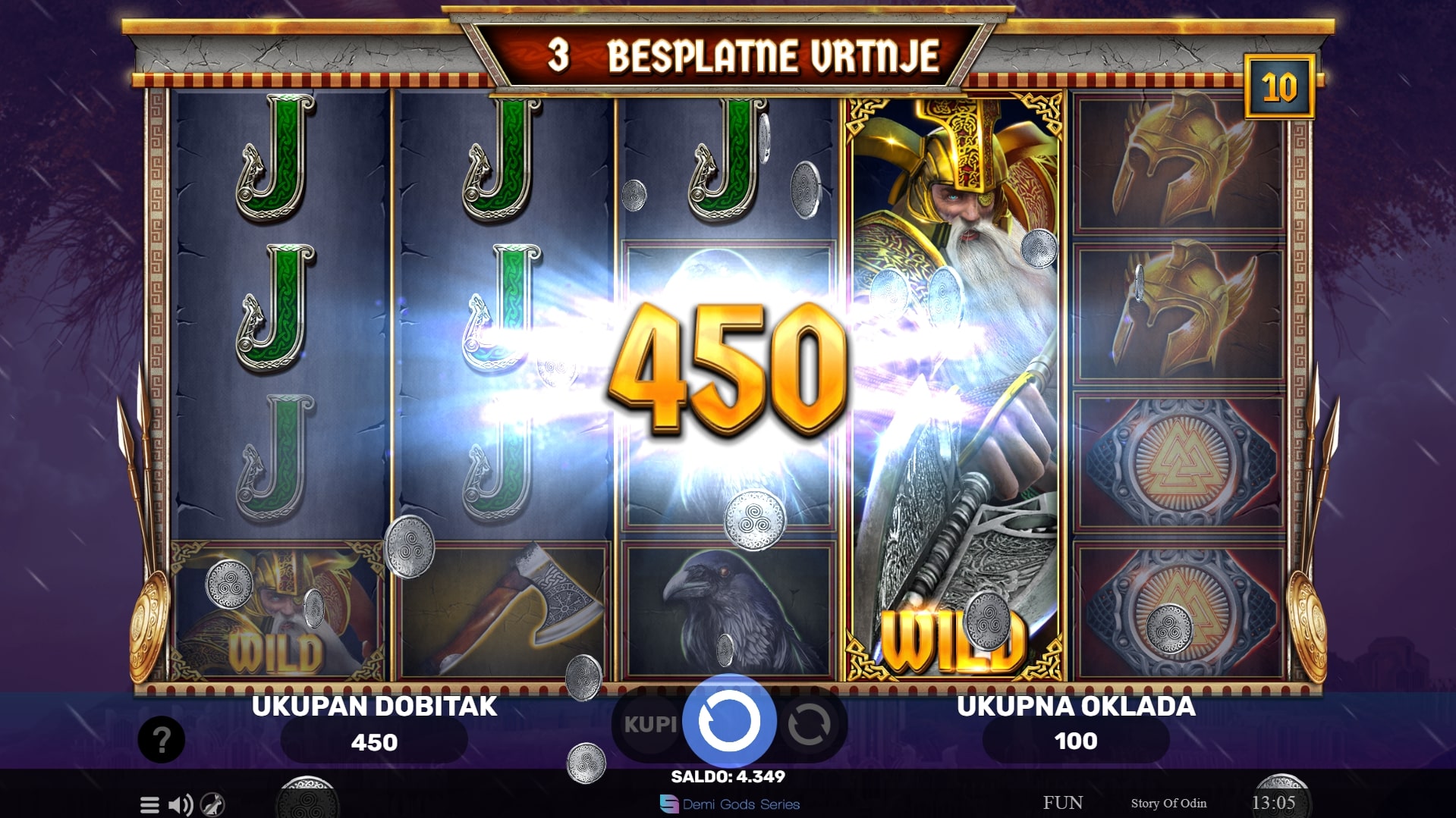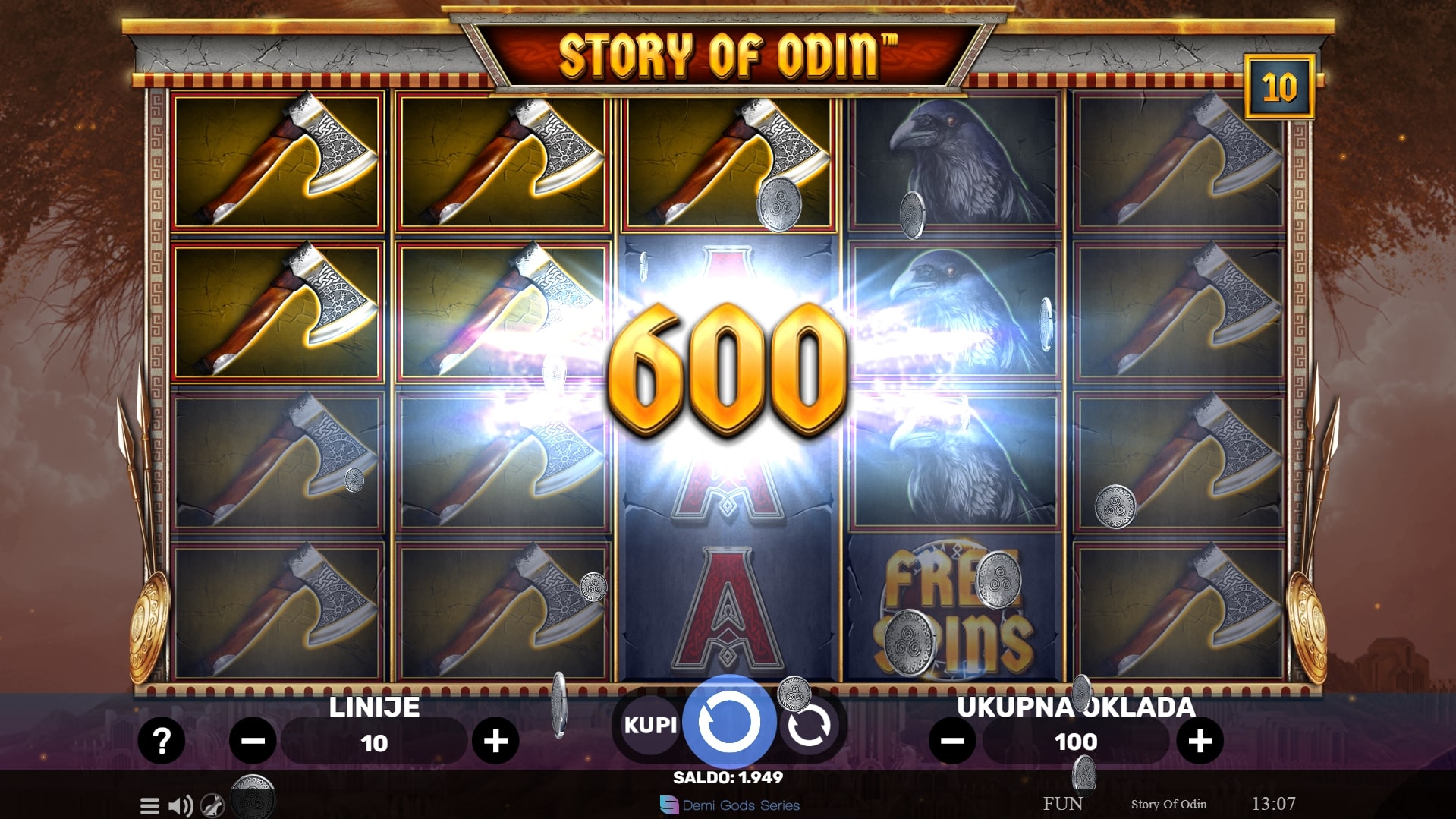 Story of Odin slot je igra koja šalje igrača u fantastični svijet nordijske mitologije u kojem vladaju kaos i tenzije. Najviše isplaćuju simboli vezani uz vikinge, a simbol Odina služi kao zamjena za druge simbole u potrazi za vrhunskim dobicima. Također, igrač može aktivirati besplatne vrtnje slaganjem Free Spins simbola. Zaigraj Story of Odin te osvoji misteriozne nagrade!
