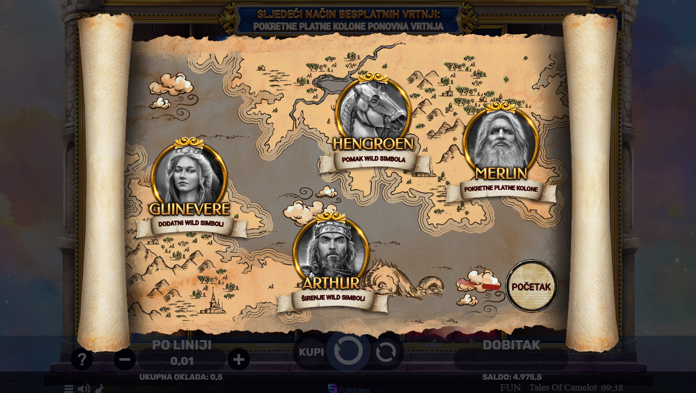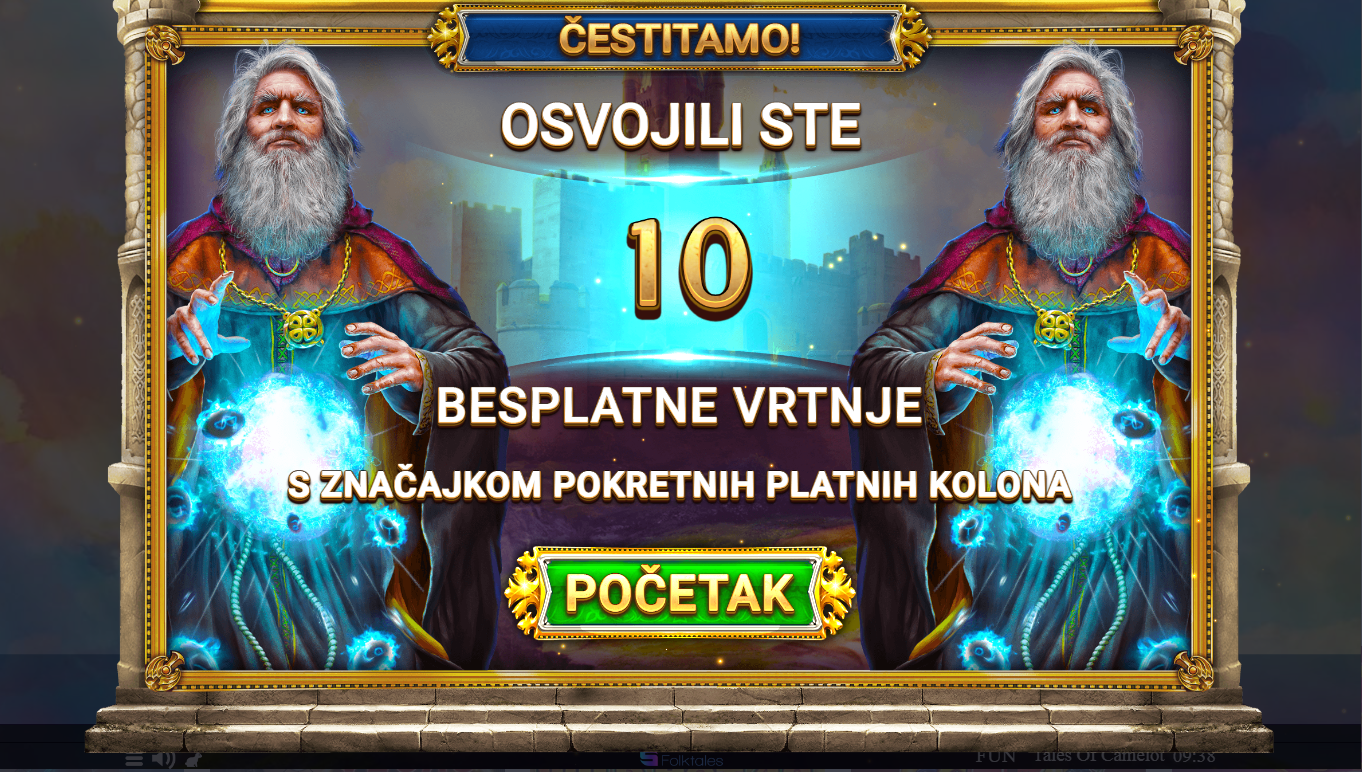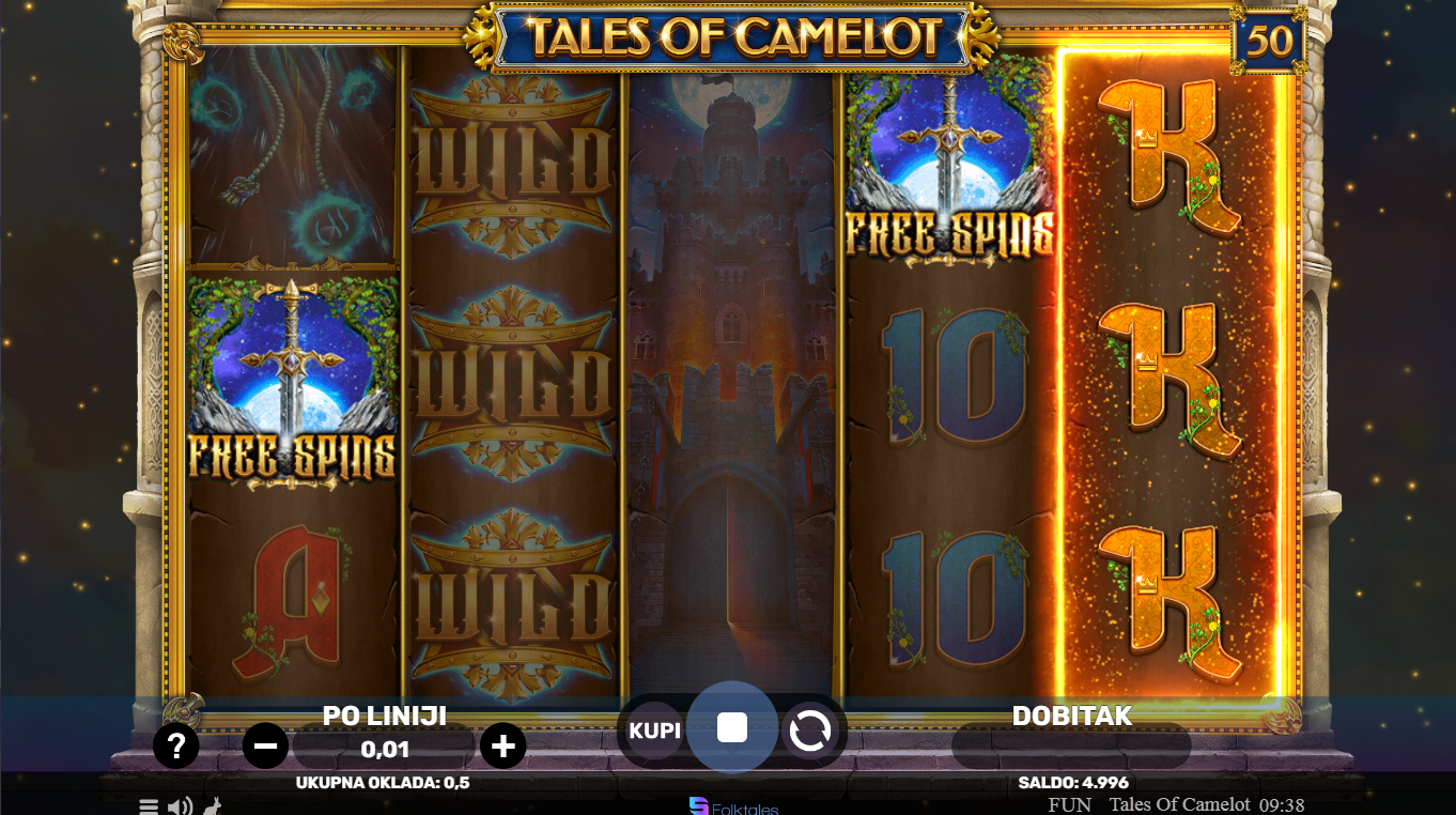 Tales of Camelot je slot igra Spinomenala koja te vodi ravno u srce legendarne kraljevine Camelot. Koluti su prepuni viteških simbola, čarolije i misterija, a svaki spin izgleda kao kadar iz epske avanture. Čekaju te wild simboli, pomični koluti i iznenadni bonus efekti. Grafika je atraktivna, animacije su fluidne, a atmosfera te u sekundi uvlači u srednjovjekovni mit. Ako voliš igre koje kombiniraju fantaziju i eksplozivne dobitke, ovo je idealan izbor.