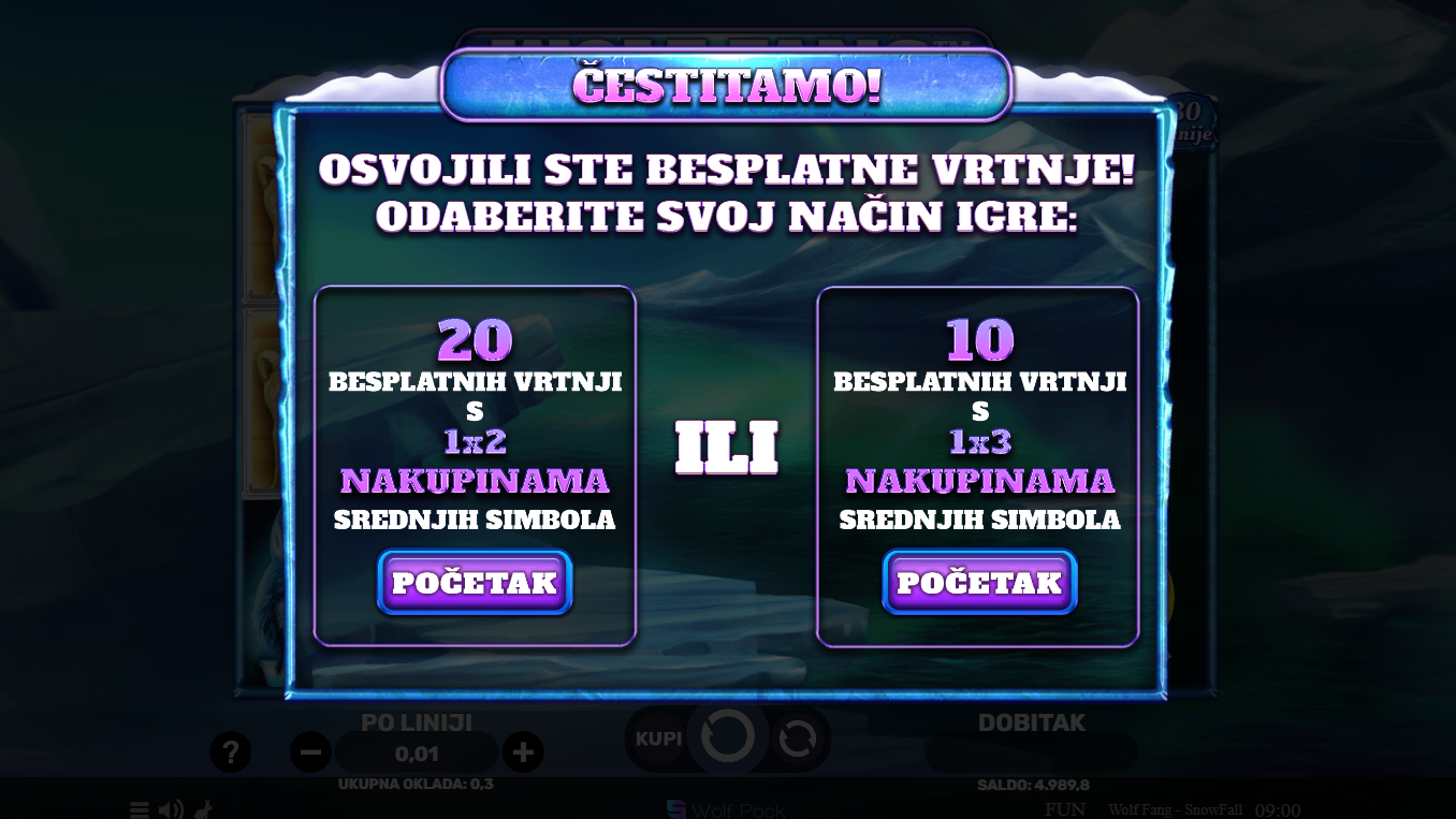 Odaberi ulog, pritisni spin i gledaj kako simboli otkrivaju svoju magiju dok se kolone okreću. Pojavi li se scatter, možeš aktivirati besplatne vrtnje i odabrati između različitih načina igre s više wildova ili više linija. Wild vuk zamjenjuje simbole i otvara prostor za moćne dobitke. Igra je brza, intuitivna i savršena za trenutke kada želiš akciju bez kompliciranja.