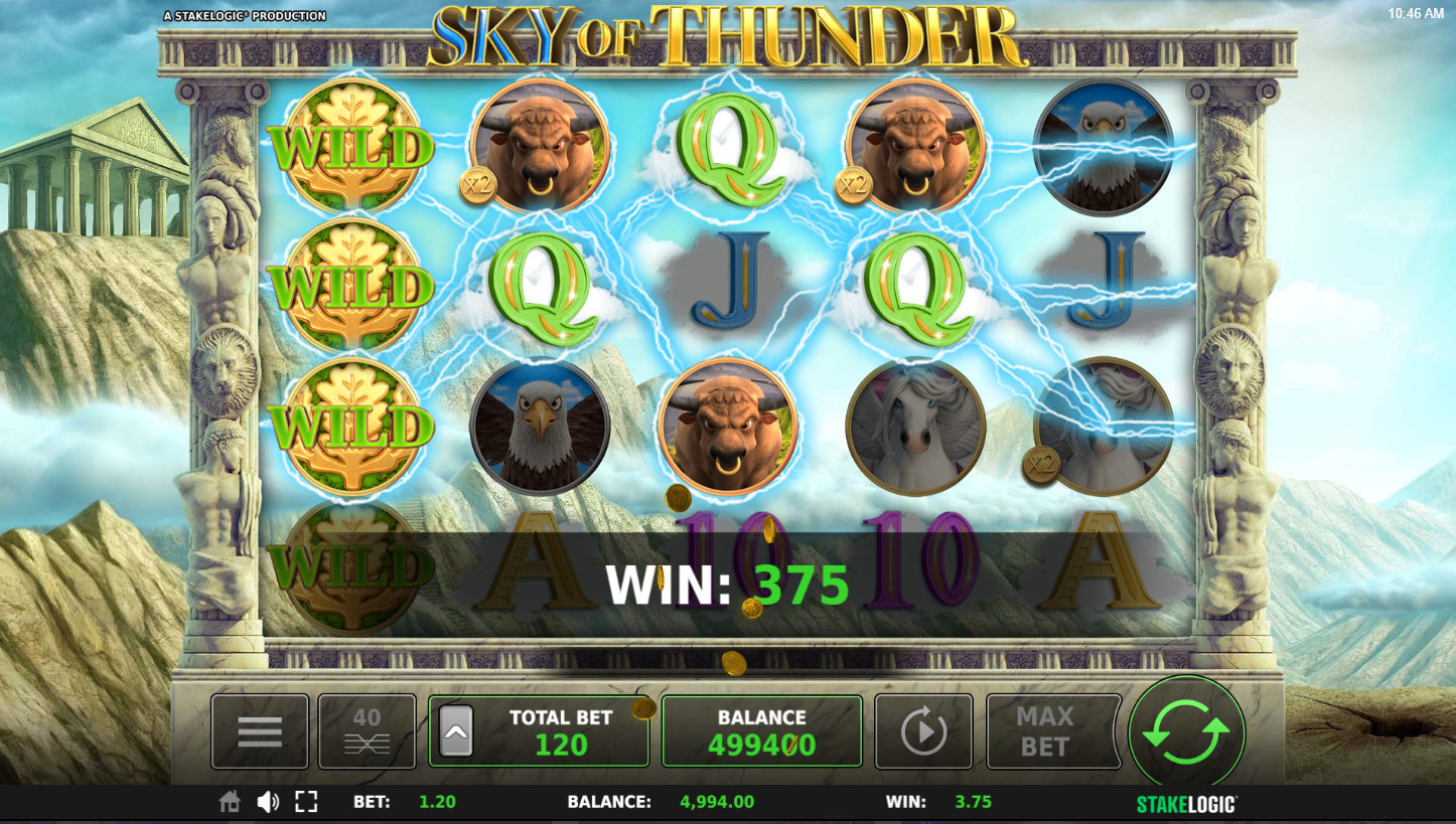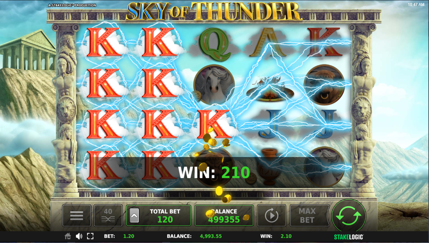 Vrti kolute i traži simbole bogova, orlova i gromova! Tri ili više Scatter simbola pokreću besplatne vrtnje s dodatnim množiteljima, dok Wild simboli mogu stvoriti munjevite kombinacije dobitaka. Igra ima jednostavnu, ali eksplozivnu mehaniku, a svaki spin je nova oluja sreće. Kad nebo zagrmi, znaš da dolazi tvoj trenutak moći!
