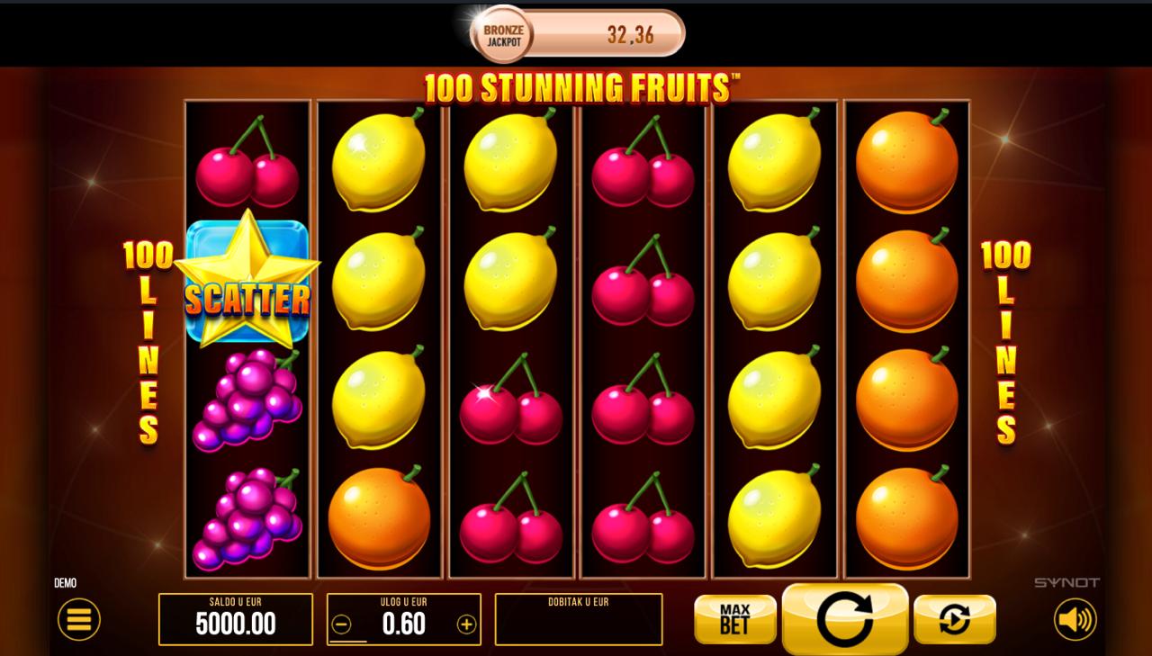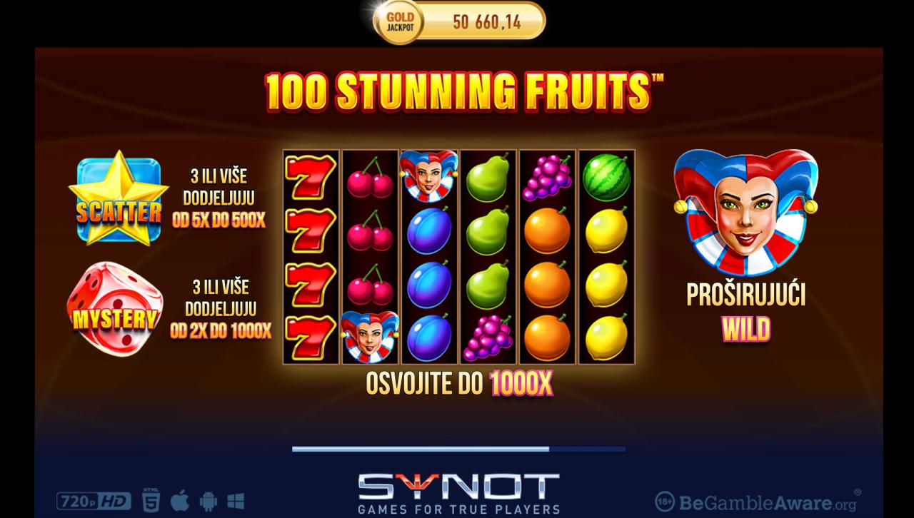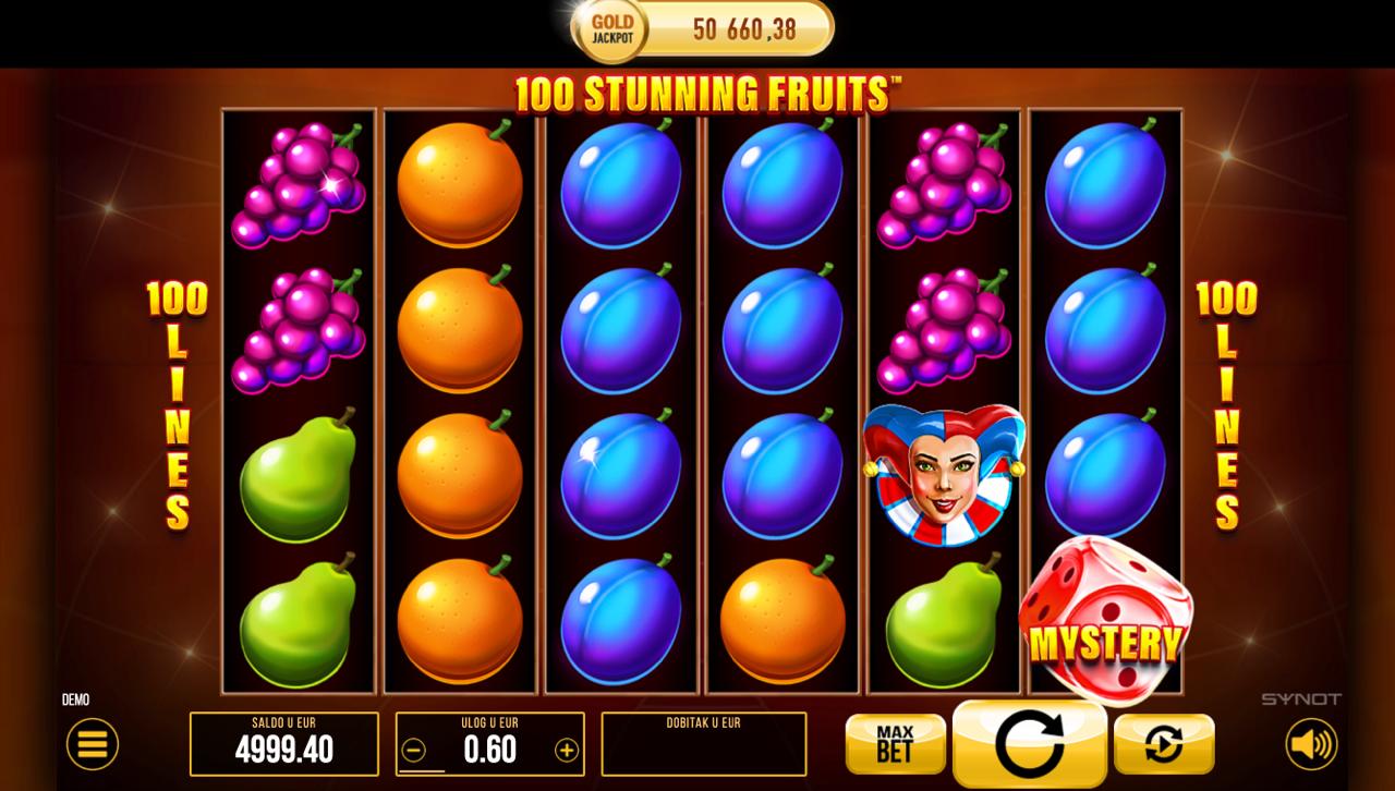100 Stunning Fruits nudi atraktivan RTP koji osigurava stabilno i dinamično iskustvo igranja. Volatilnost je srednja, što znači da igra kombinira češće manje dobitke s mogućnošću povremenih većih isplata — osobito kada se aktivira jackpot značajka.
