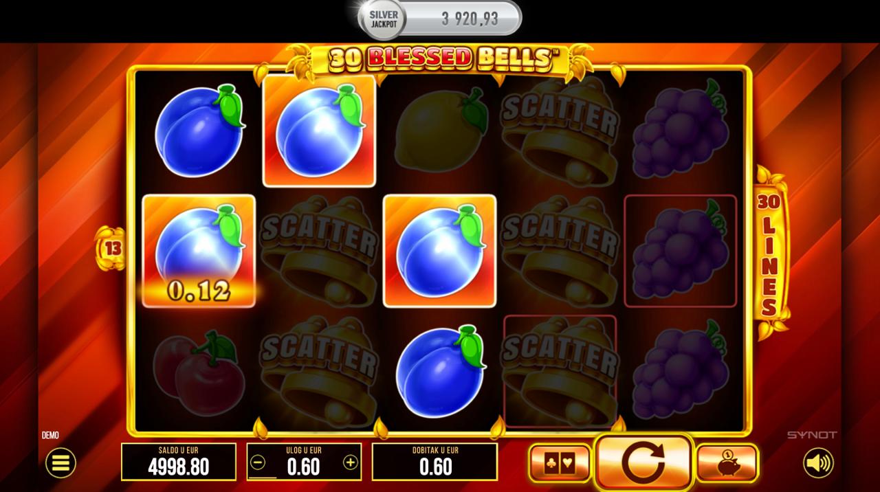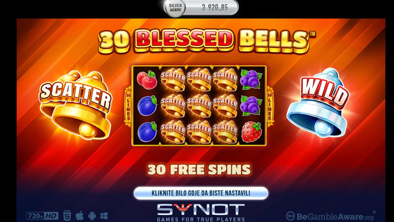 30 Blessed Bells igra se na 5 rola, a cilj je složiti iste simbole na aktivnim dobitnim linijama, počevši s lijeve strane, kako bi se ostvarili dobitci. Klasični simboli poput zvona, voća i sedmica donose različite razine nagrada, dok posebni simboli mogu povećati šanse za veće isplate — uključujući jackpot! Postavi svoj ulog, zavrti role i uživaj u jednostavnom, ali uzbudljivom slot iskustvu.