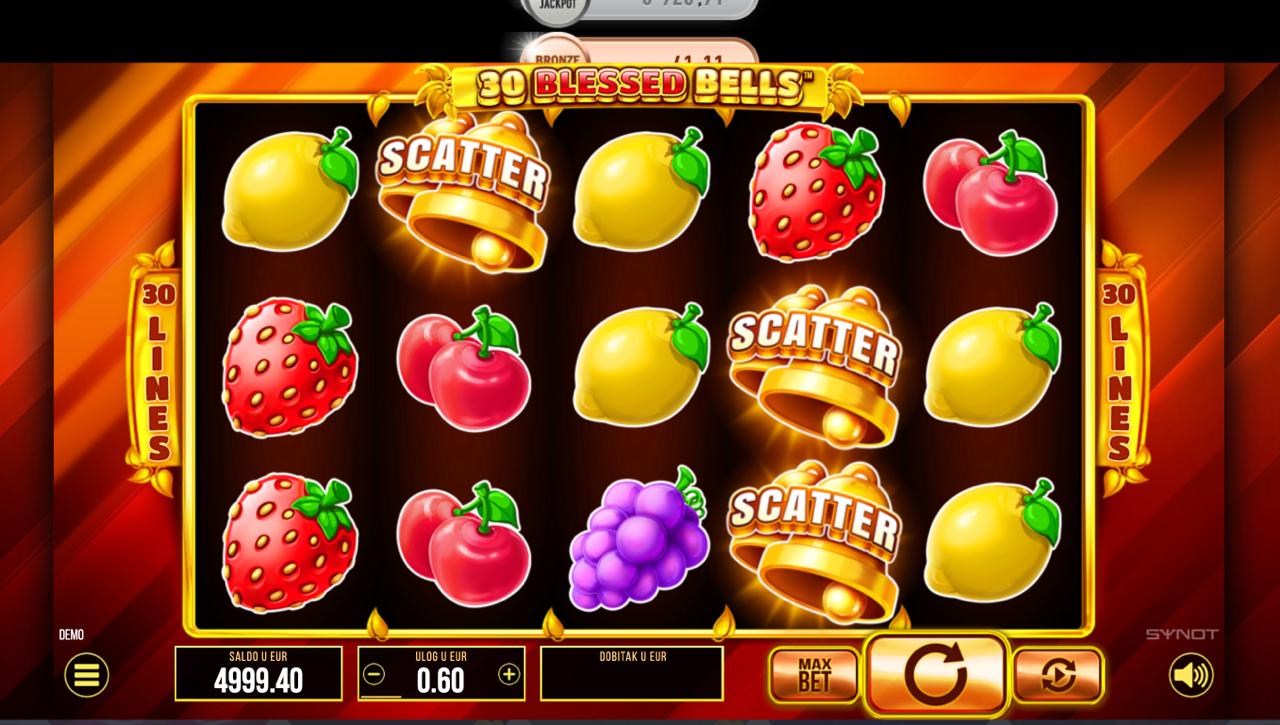 30 Blessed Bells nudi atraktivan RTP koji omogućuje stabilno i dinamično iskustvo igranja. Volatilnost je srednja, što znači da igra kombinira relativno česte manje dobitke s mogućnošću povremenih većih isplata — osobito kada se aktivira jackpot značajka.