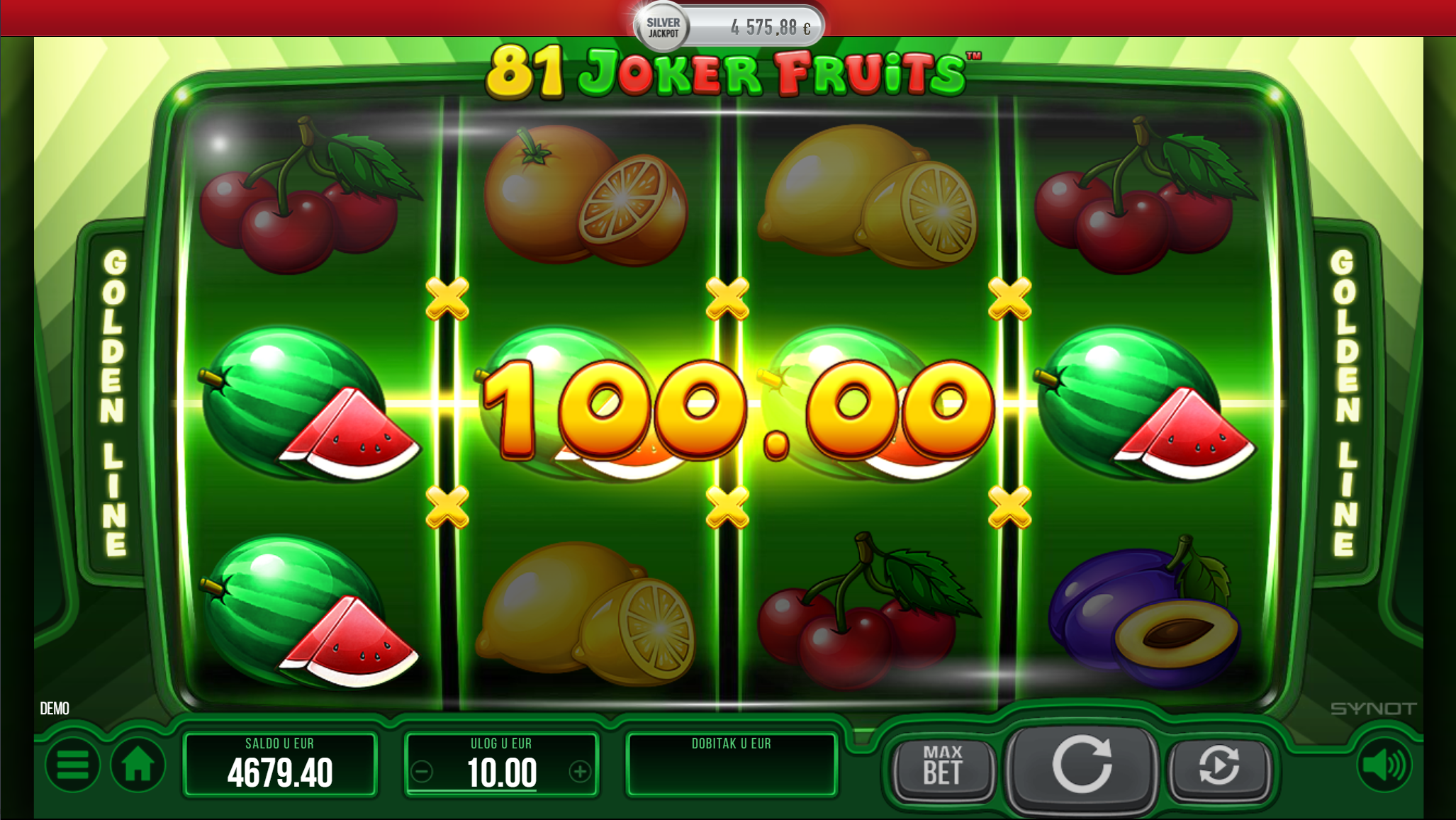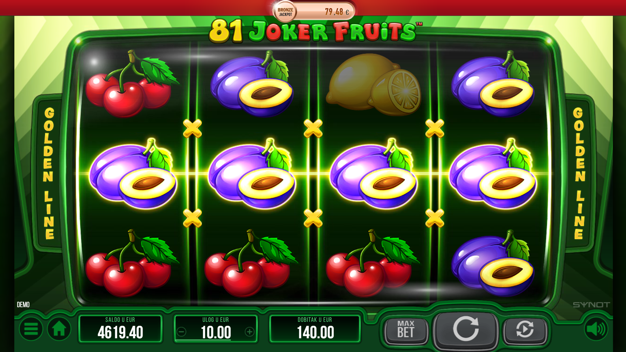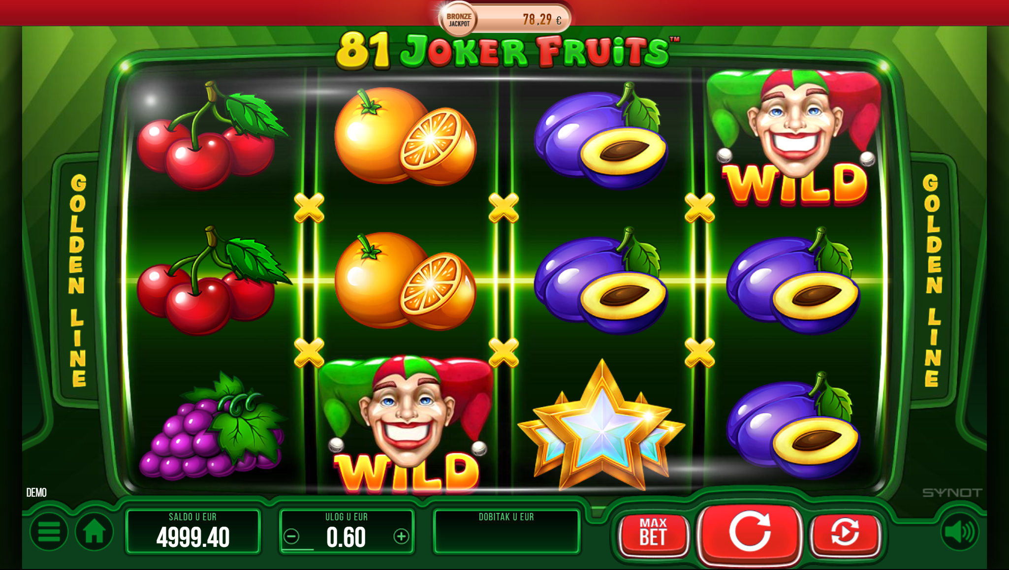 Ljubitelj si klasičnih i jednostavnih voćih slotova? Na pravom si mjestu jer 81 Joker Fruits pruža sve to, a i mnogo više. Primamljivo ilustrirano voće jednostavnog dizajna, kao i način igranja učiniti će dozu zabave i zanimacije nedostižnom! Kako uzbuđenju tu nebi bio kraj, pobrinuti će se joker simbol i igranje pretvoriti u super uzbudljivo te bogato po pitanju dobitaka! Kao jedan od najpopularnijih slotova, 81 Joker Fruits odličan je izbor za sve igrače koji vole izvrstan omjer rizika i dobitaka.