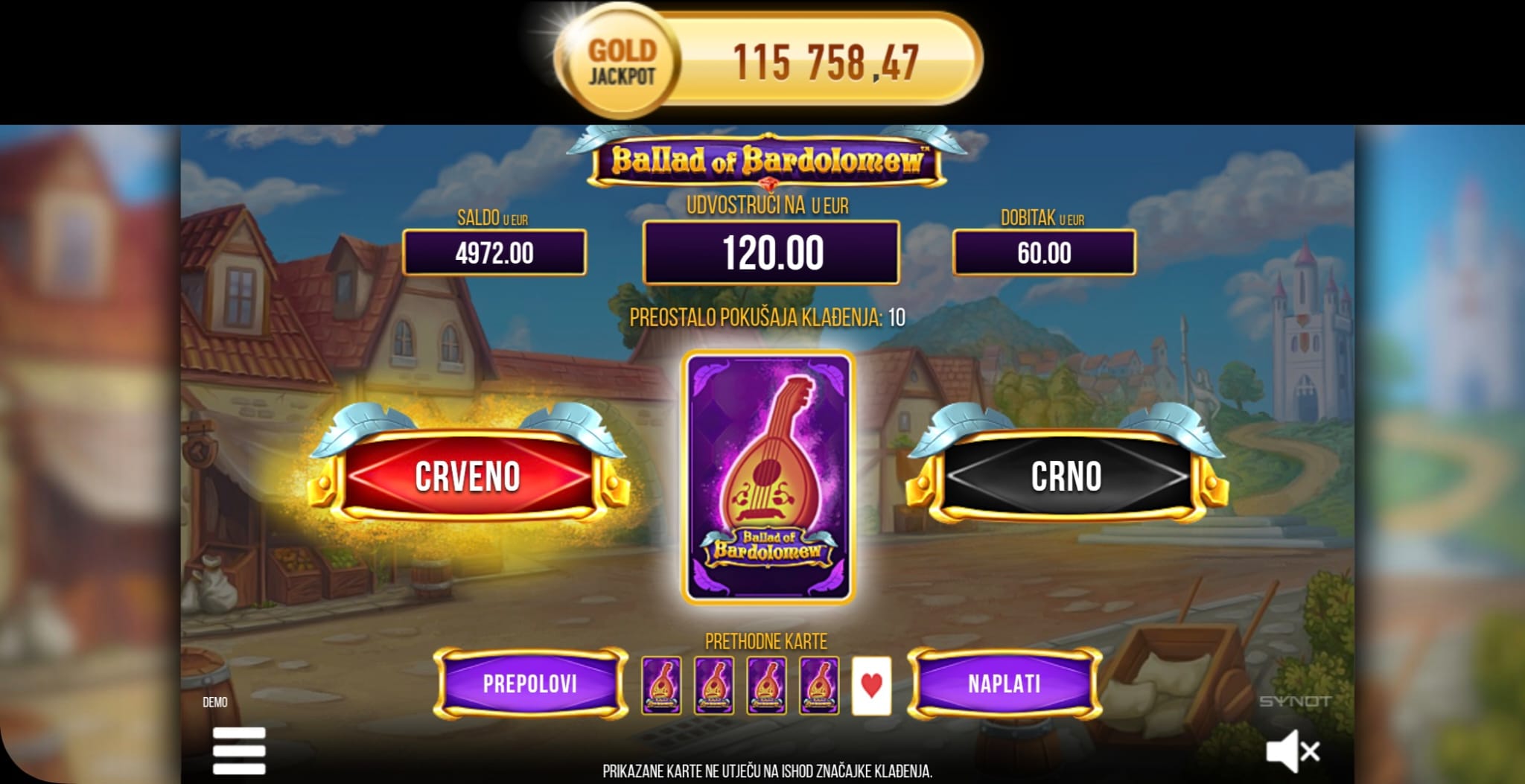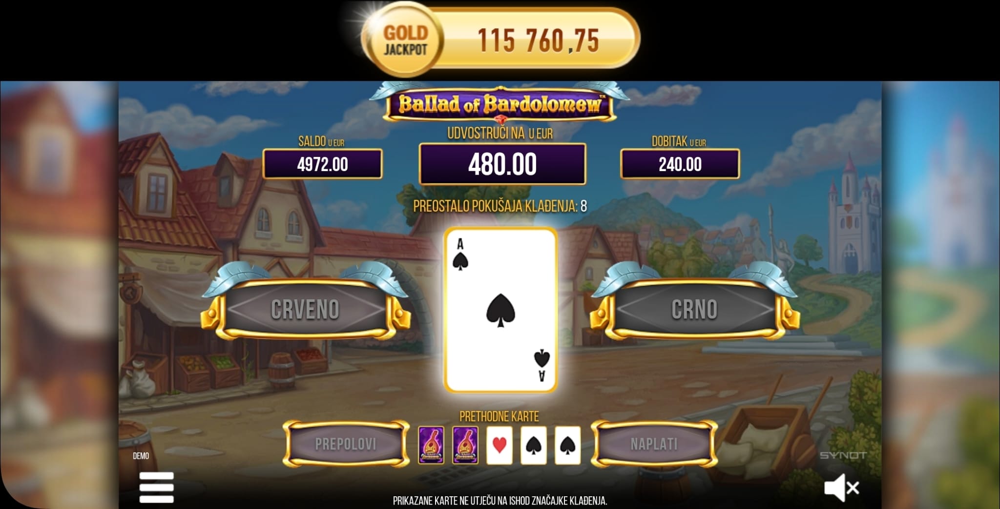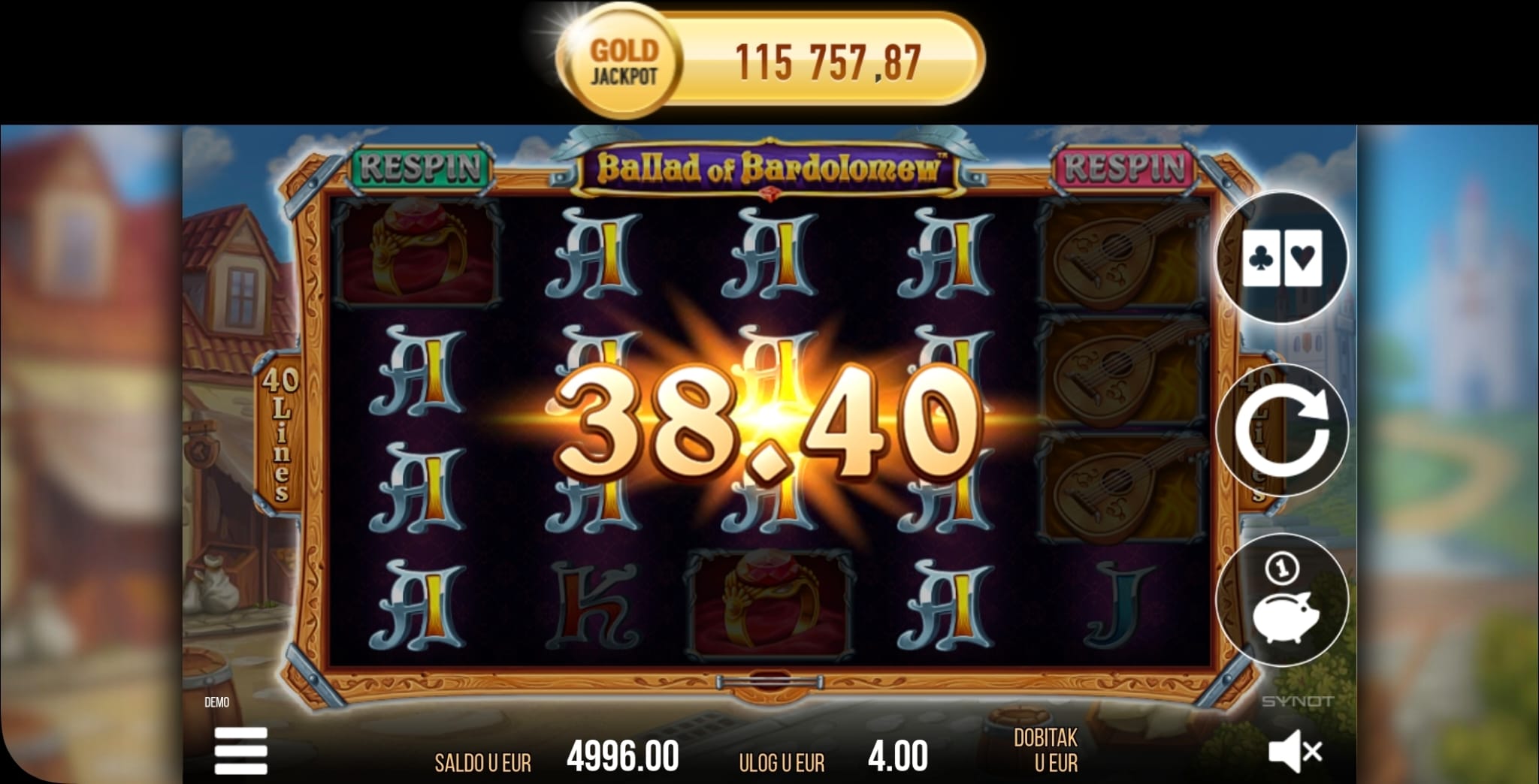 U igri Ballad of Bardolomew dobitci se ostvaruju na 40 fiksnih linija za klađenje. Wild simbol zamjenjuje sve simbole osim Gertha i Lucretia simbola.