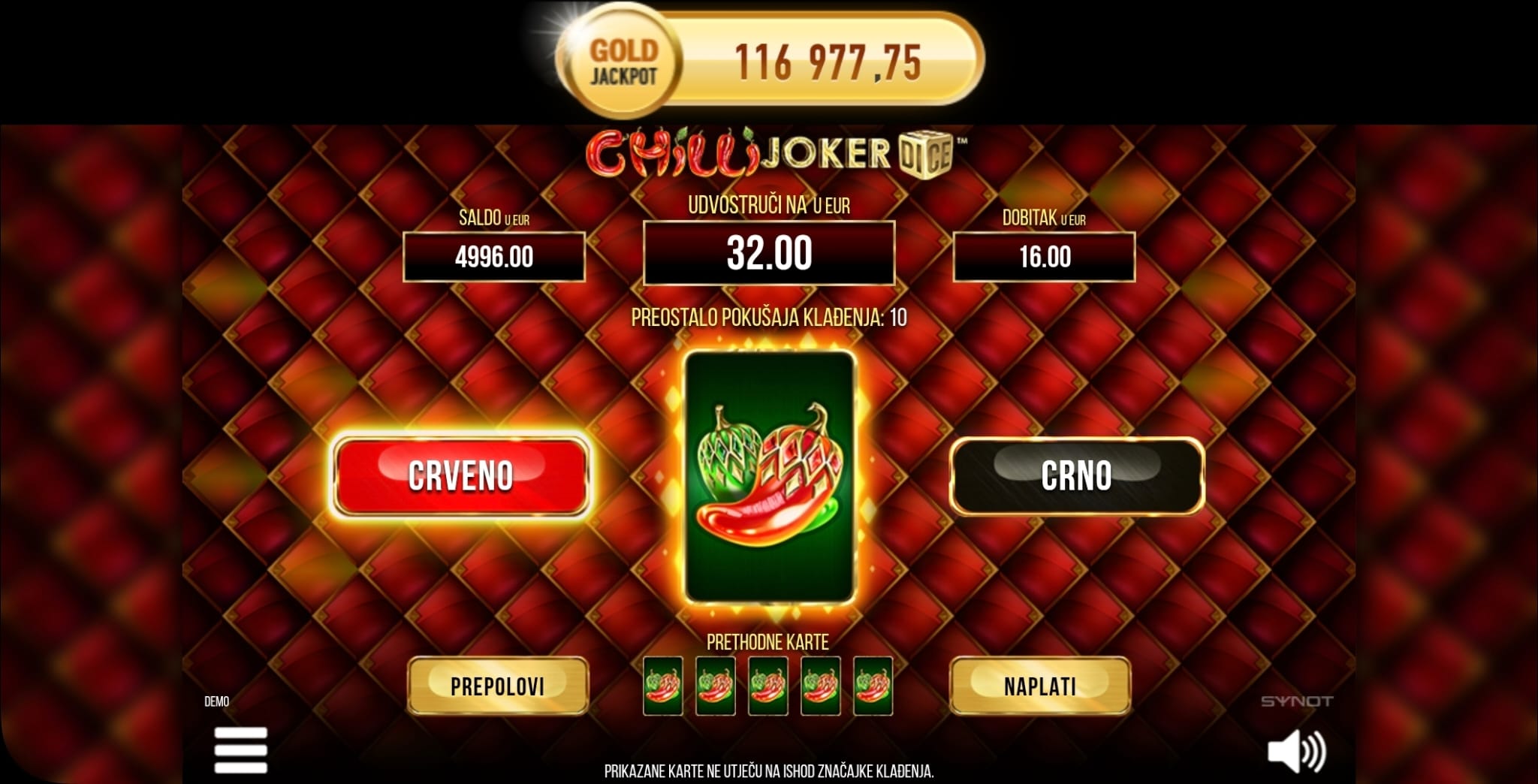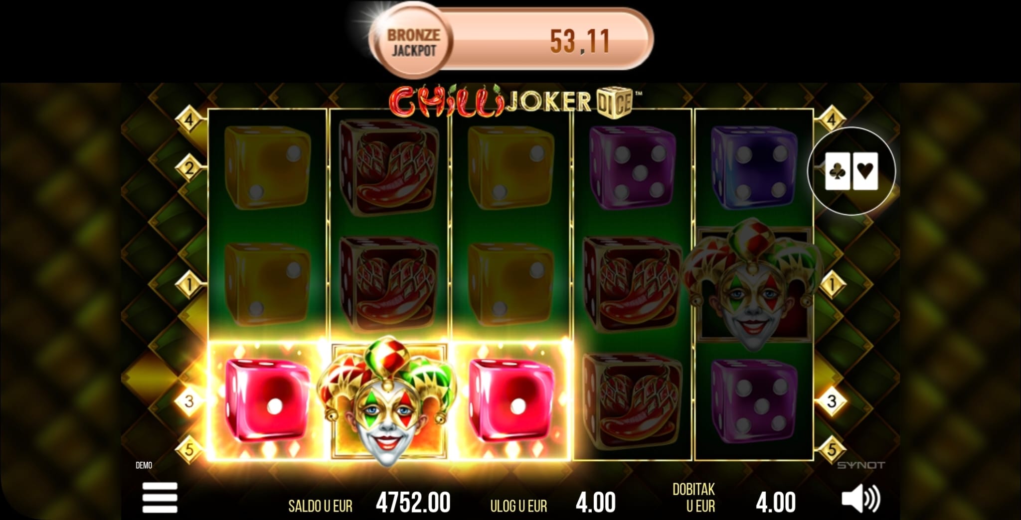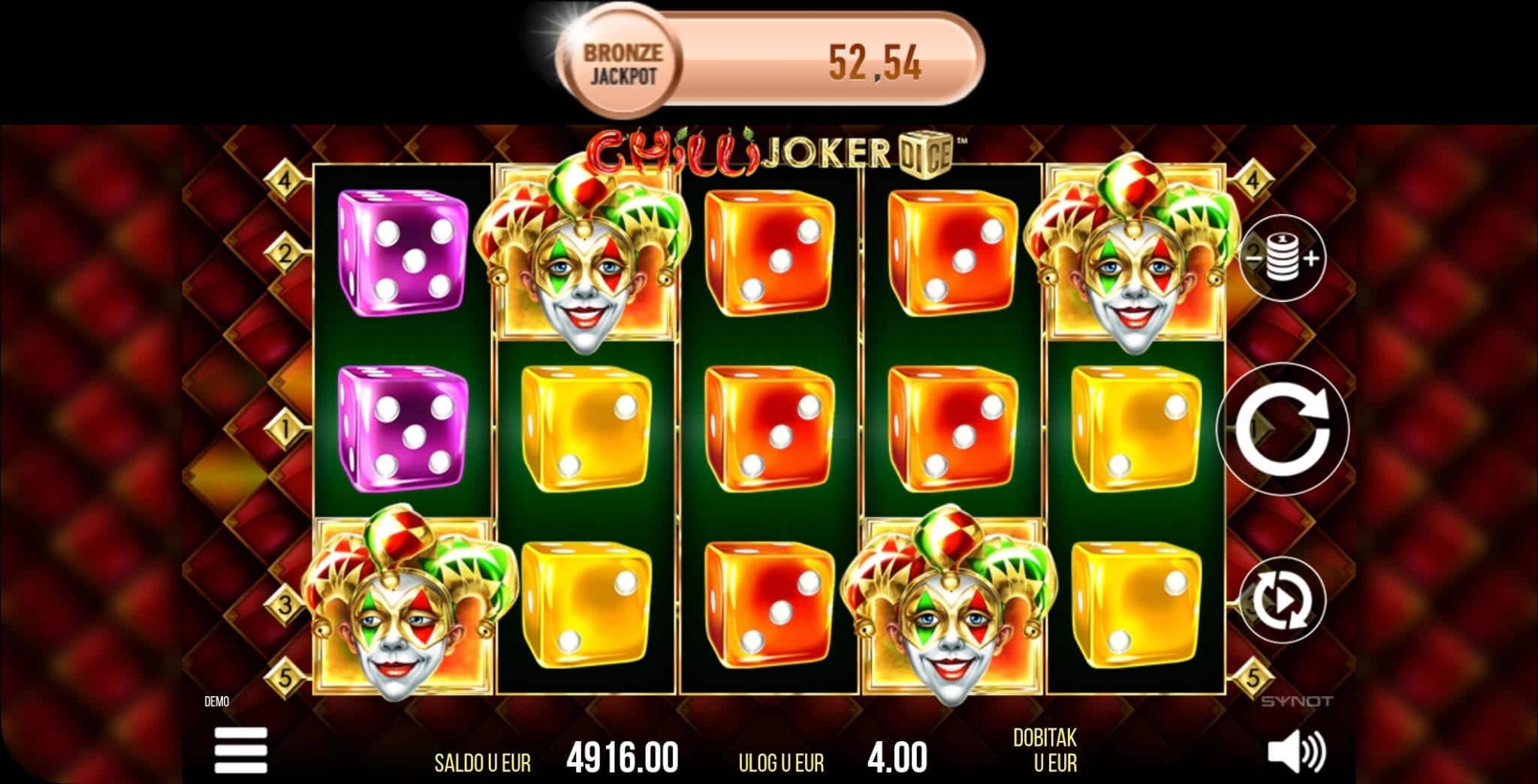 Synot. Ovaj video slot s 5 valjaka i 5 fiksnih isplatnih linija donosi poznate simbole kockica, ali s uzbudljivim značajkama koje vam mogu donijeti paprene