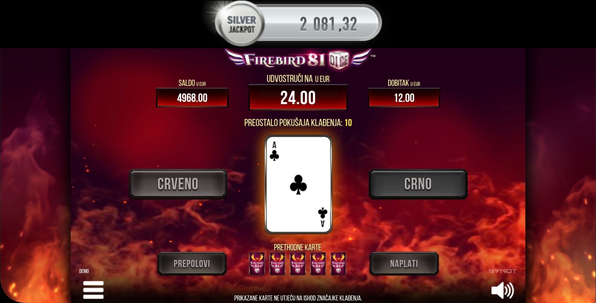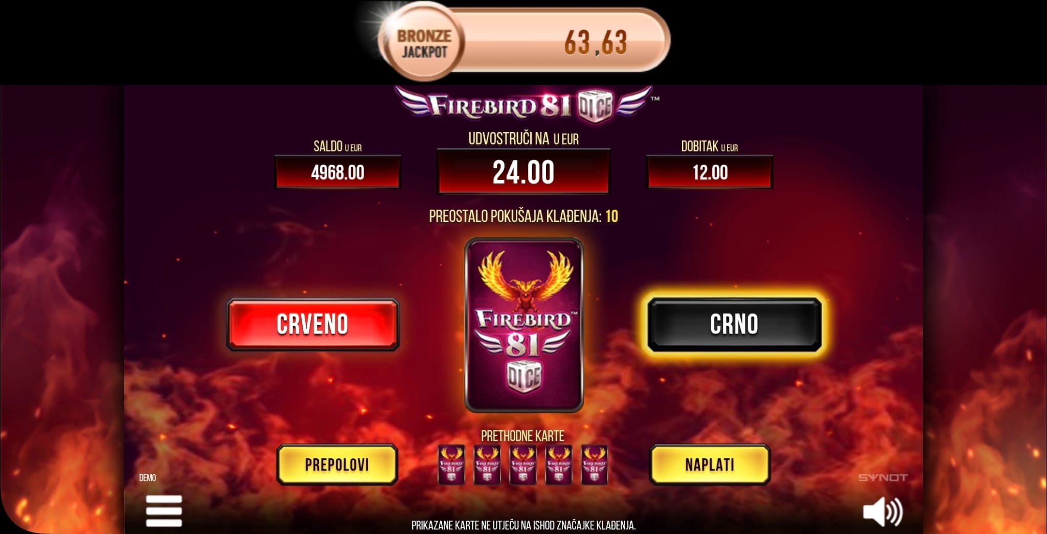 Nakon svake dobitne vrtnje, imate priliku udvostručiti svoj dobitak u značajci Klađenja pogađajući boju sljedeće karte.