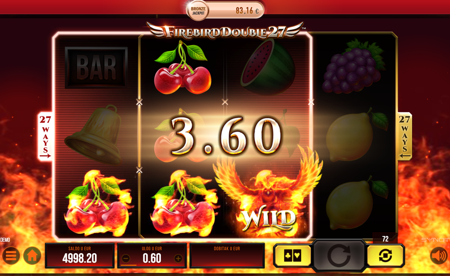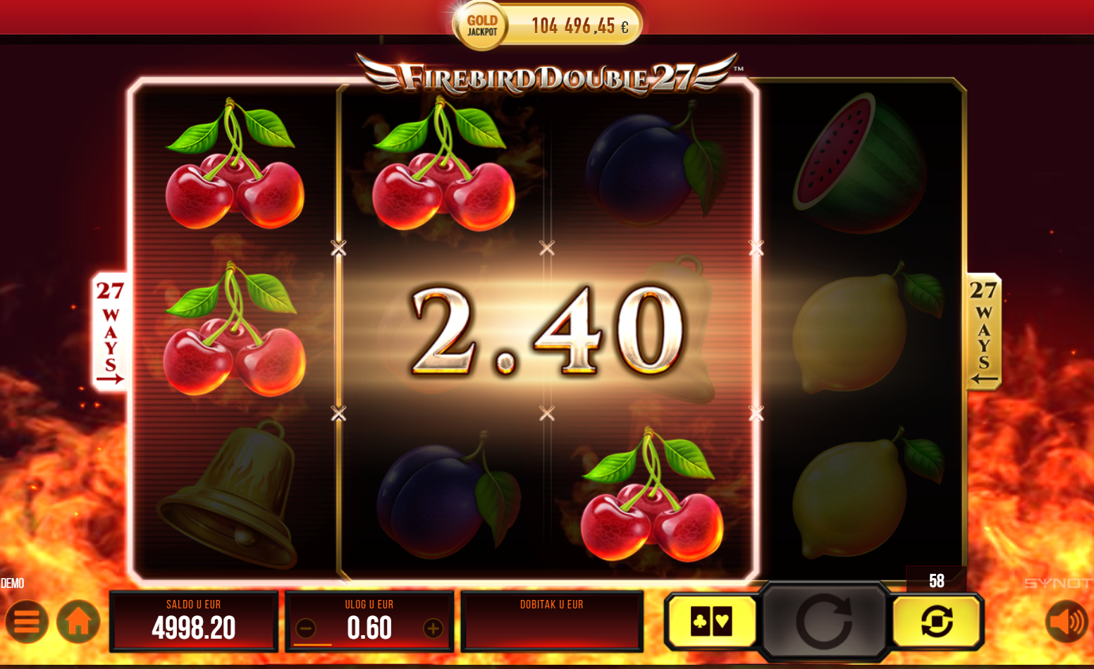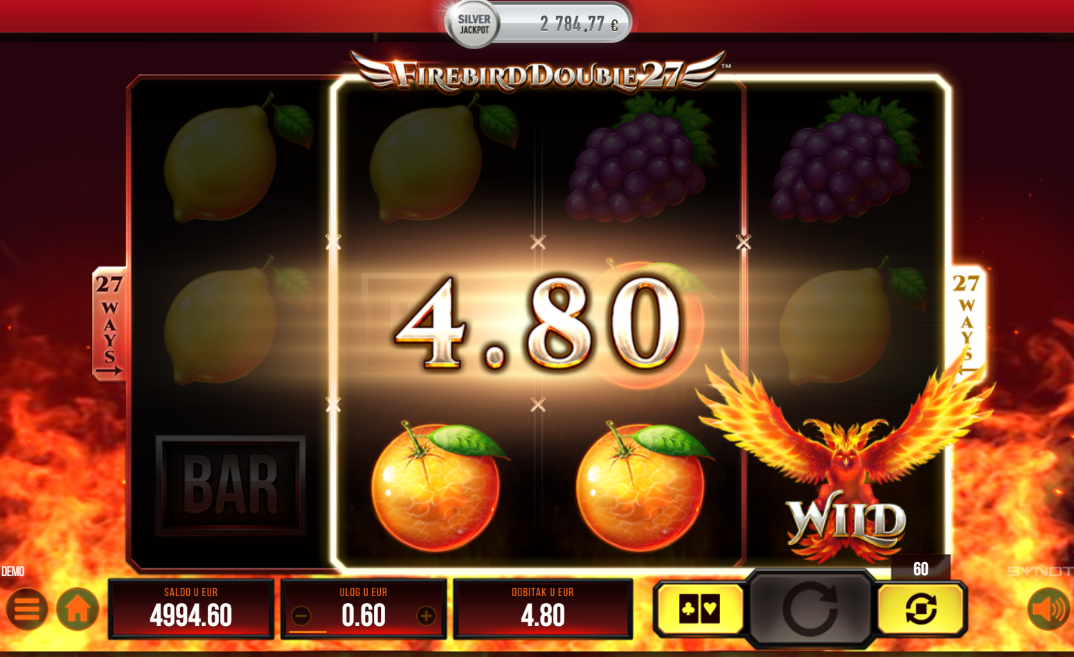 Firebird Double 27 ima RTP od 96%, što znači da igra nudi dobre šanse za dobitak. Volatilnost je srednja, što omogućuje balans između čestih manjih i povremenih većih dobitaka. Ova igra je idealna za igrače koji uživaju u uzbudljivom igranju i žele priliku za značajne nagrade bez prevelikog rizika.