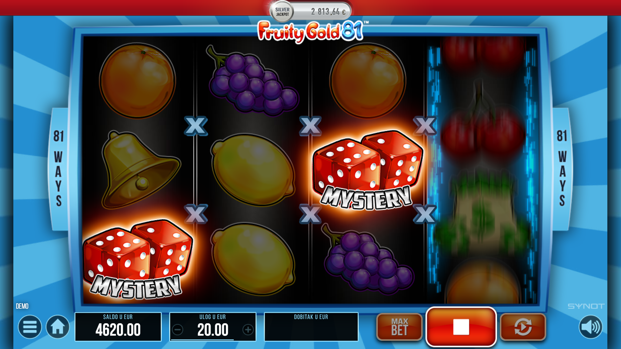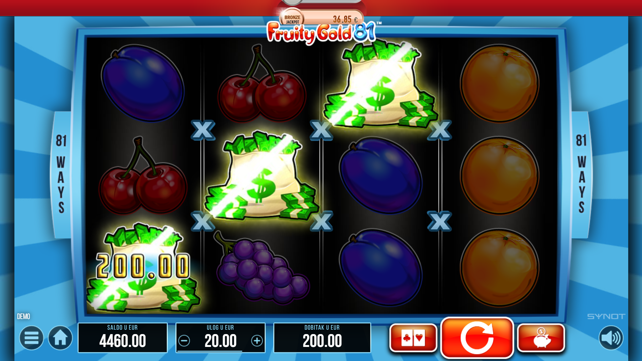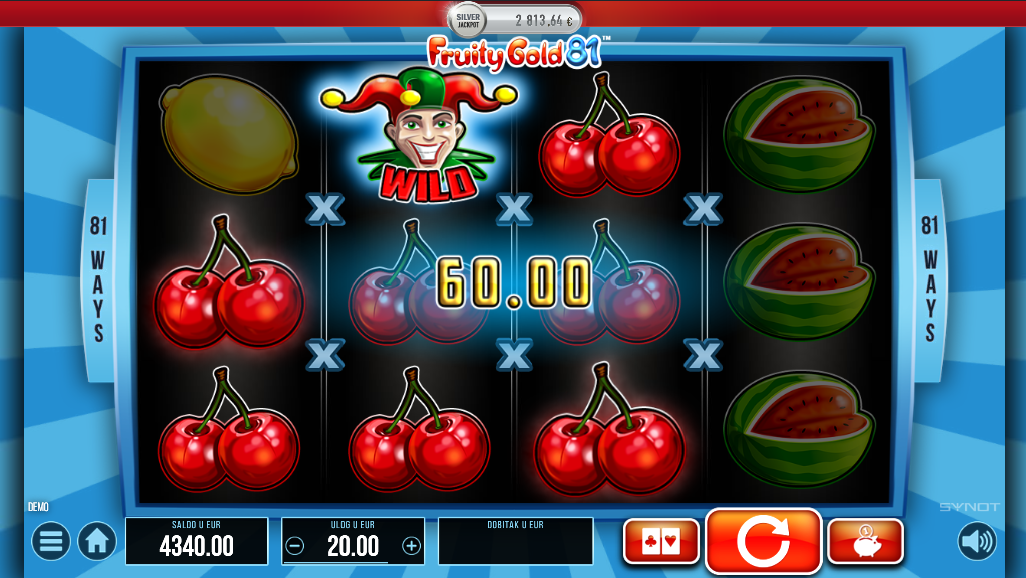 Igra Fruity Gold 81 ima RTP u iznosu od 95.24%, što znači da igrači imaju dobre šanse za ostvariti dobitak. Volatilnost igre je srednja, što znači da igrači mogu očekivati česte, ali niže dobitke.