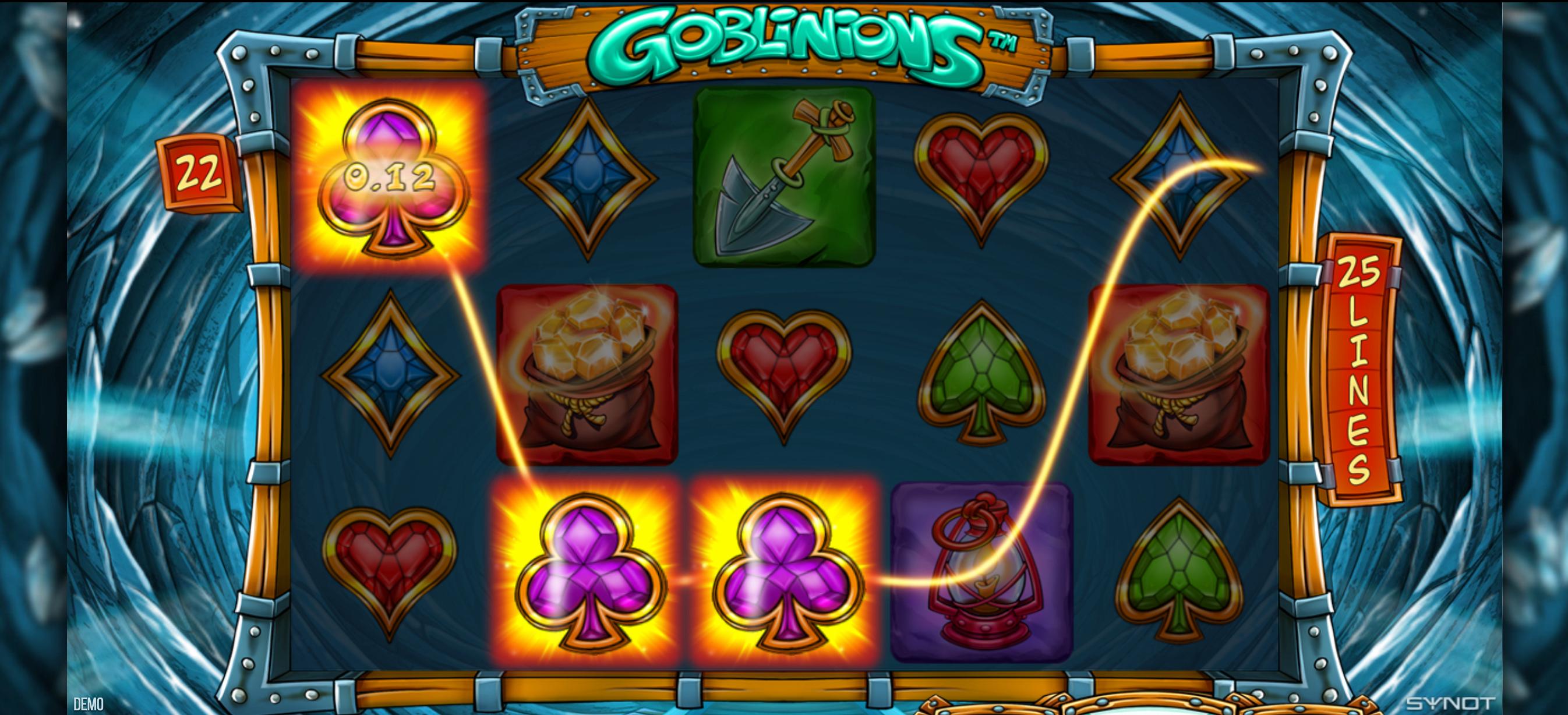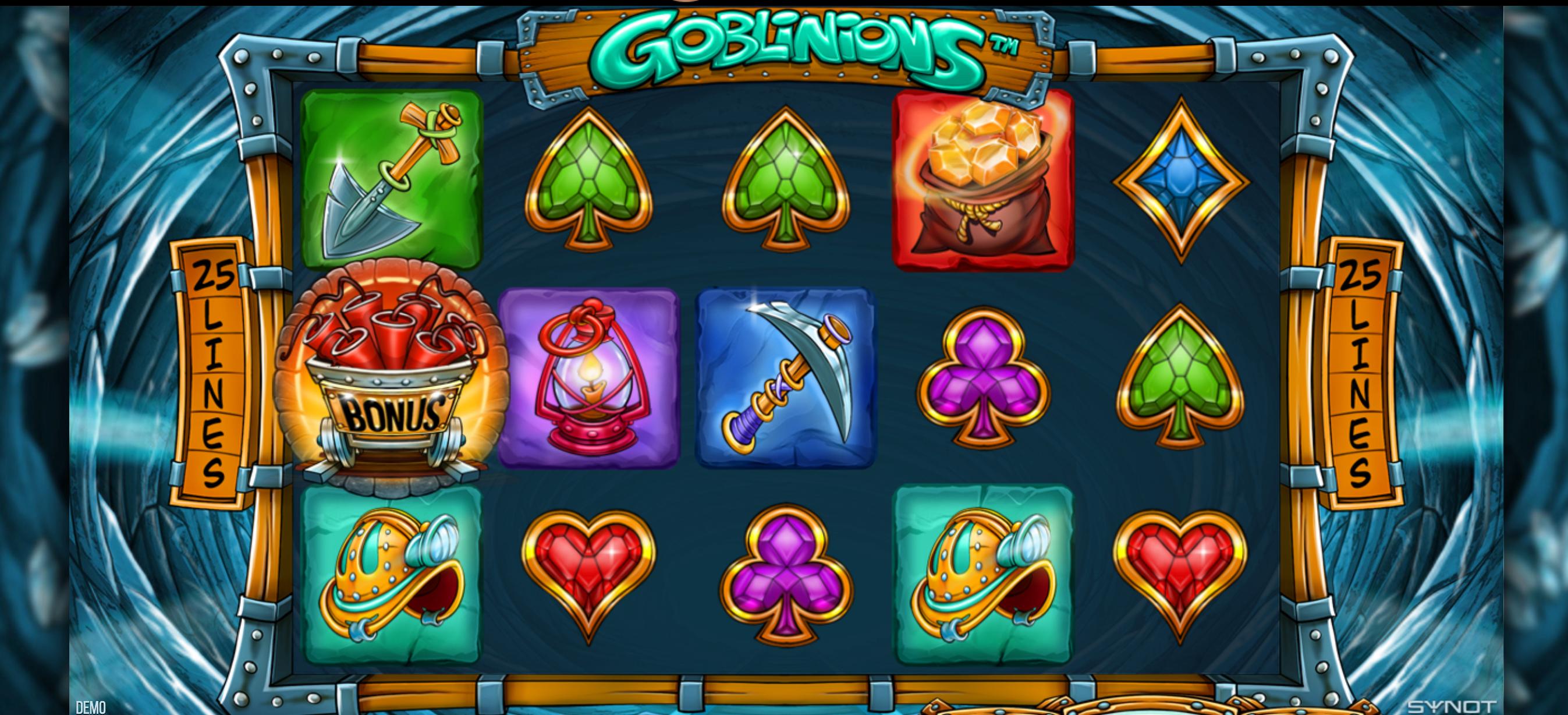 Goblinions je slot igra koju je razvio Synot Games, smještena u svijet rudarenja i fantastičnih stvorenja. Igra se odvija na pet koluta i tri reda, s 25 fiksnih dobitnih linija. Grafika igre odlikuje se živopisnim simbolima poput dragulja, rudarskih alata i simpatičnih goblina, stvarajući šareni i zabavni ugođaj. Tema igre kombinira elemente fantazije i avanture, pružajući igračima jedinstveno iskustvo.