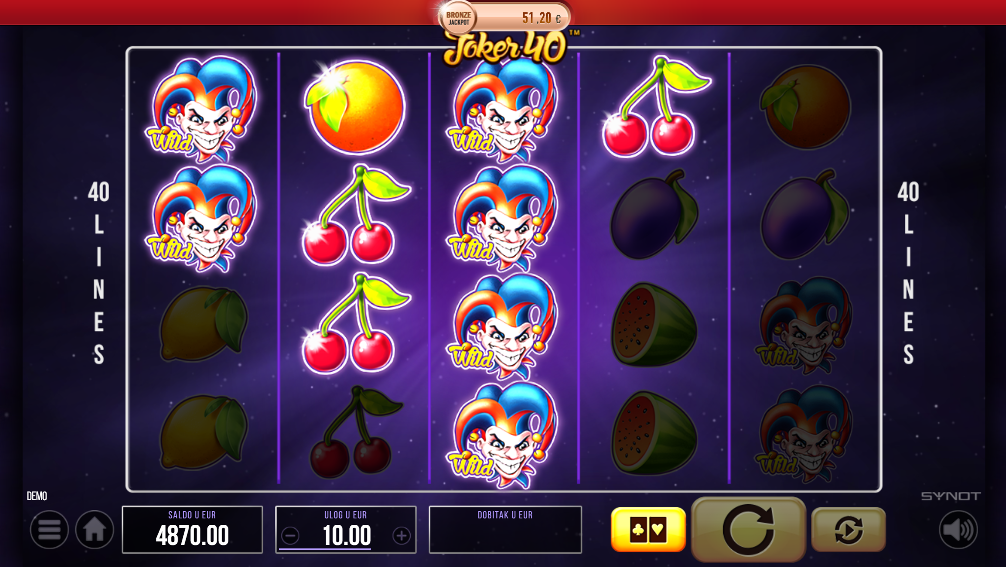 Igra Joker 40 ima RTP u iznosu od 96.10%, što znači da igrači imaju dobre šanse za ostvariti dobitak. Volatilnost igre je srednja, što znači da igrači mogu očekivati česte, ali niže dobitke.