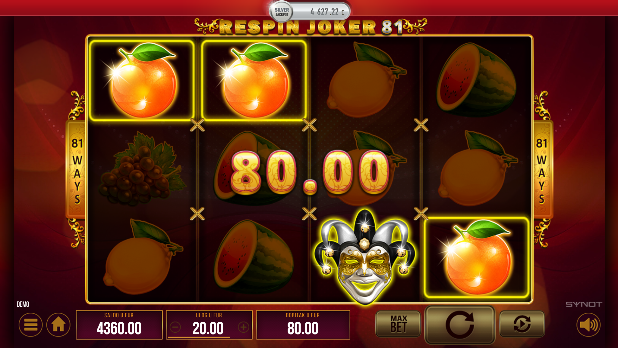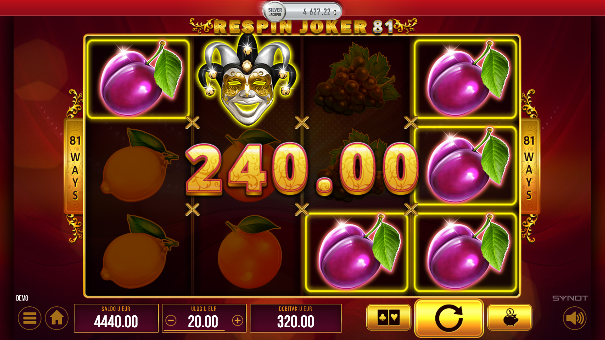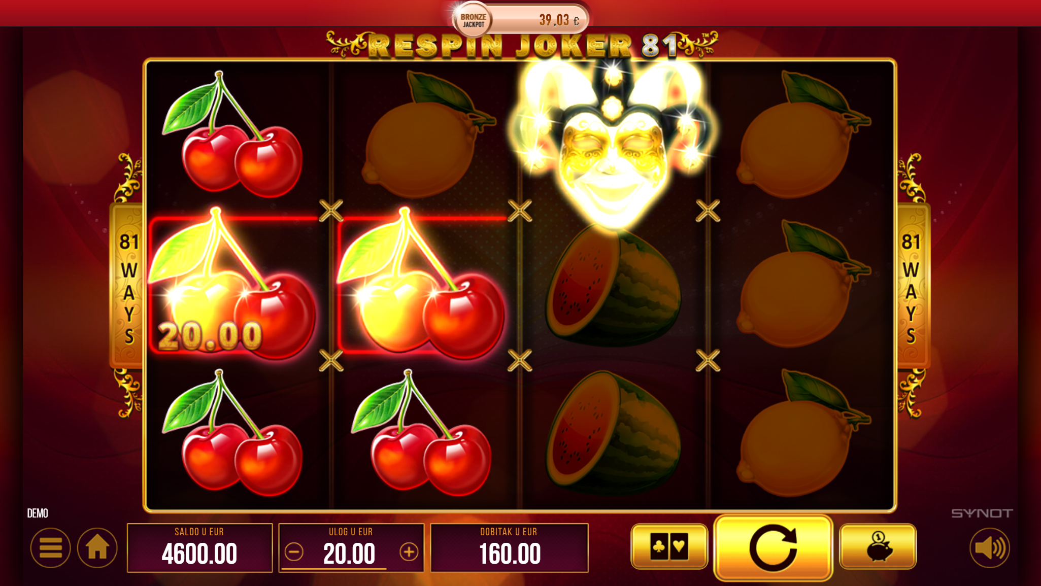Ljubitelj si klasičnih i jednostavnih voćih slotova? Na pravom si mjestu jer Respin Joker 81 pruža sve to, a i mnogo više. Primamljivo ilustrirano voće jednostavnog dizajna, kao i način igranja učiniti će dozu zabave i zanimacije nedostižnom! Kako uzbuđenju tu nebi bio kraj, pobrinuti će se joker simbol i igranje pretvoriti u super uzbudljivo te bogato po pitanju dobitaka! Kao jedan od najpopularnijih slotova, Respin Joker 81 odličan je izbor za sve igrače koji vole izvrstan omjer rizika i dobitaka.