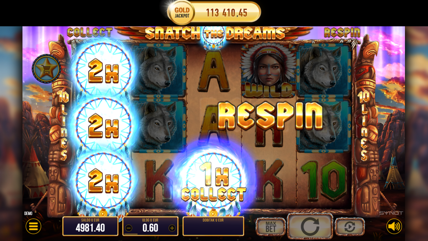 Postavi ulog i zavrti bubnjeve, cilj je složiti simbole na 10 linija. Bonus simboli otključavaju Free Spins rundu, dok Dreamcatcher simboli na trećem bubnju prikupljaju novčane nagrade i pokreću respinove. Expanding simboli i multiplikatori do 10× donose dodatni val uzbuđenja. Svaka vrtnja može donijeti nešto novo i neočekivano!