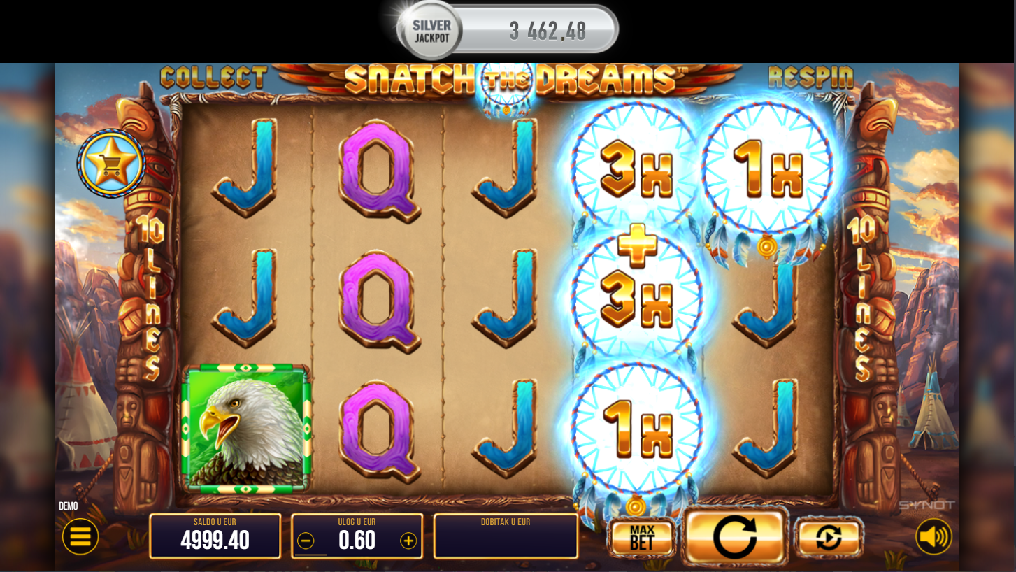 Snatch The Dreams, od Synota, vodi te u svijet snova i mistike, inspiriran tradicijom san hvatača. Na 5x3 bubnjeva i 10 linija isplate čekaju te totemi, simboli prirode i moćne figure. Atmosfera je čarobna i puna iznenađenja, s pet nasumičnih značajki u osnovnoj igri. Ako voliš spiritualne teme s modernim twistom, ovo je slot za tebe.