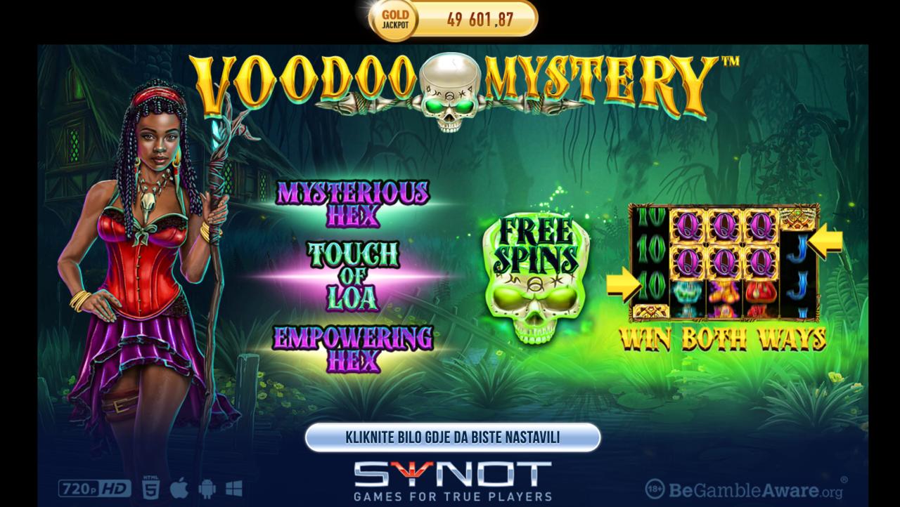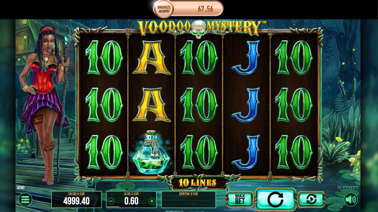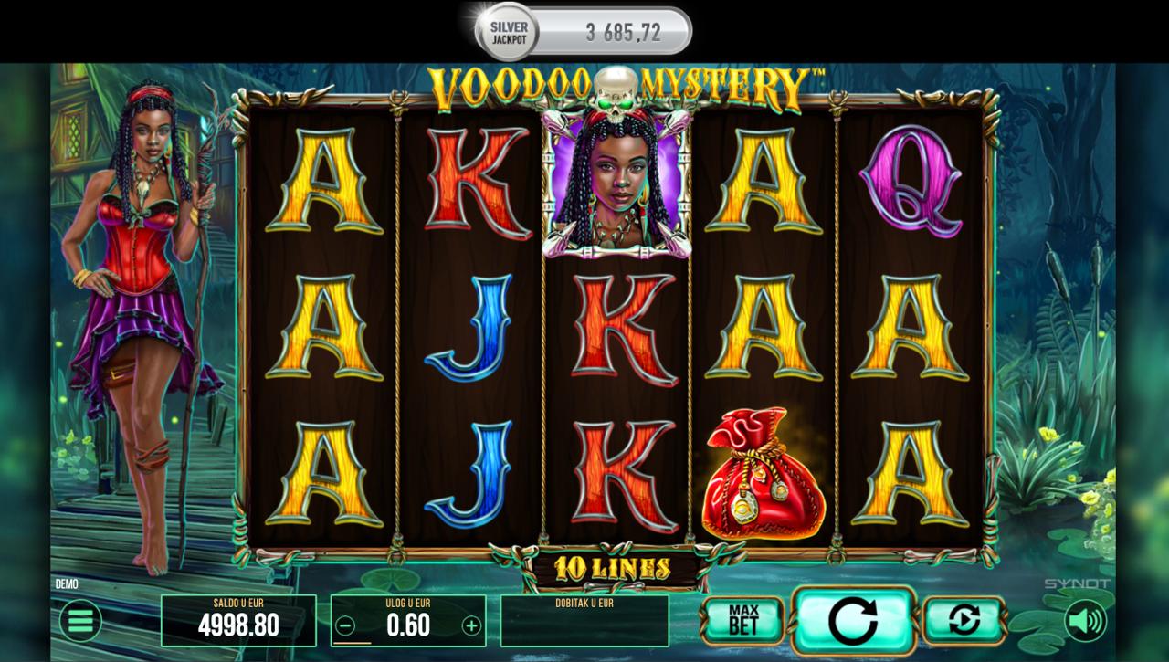 Voodoo Mystery igra se na 5 rola, a cilj je složiti iste simbole na aktivnim linijama, počevši s lijeve strane, kako bi se ostvario dobitak. Simboli inspirirani voodoo kulturom i mističnim elementima donose različite razine dobitaka, dok posebni simboli mogu pokrenuti dodatne mogućnosti za veće isplate. Postavi ulog, zavrti role i prepusti se tajanstvenoj atmosferi igre koja svakom spinu daje dodatnu napetost.