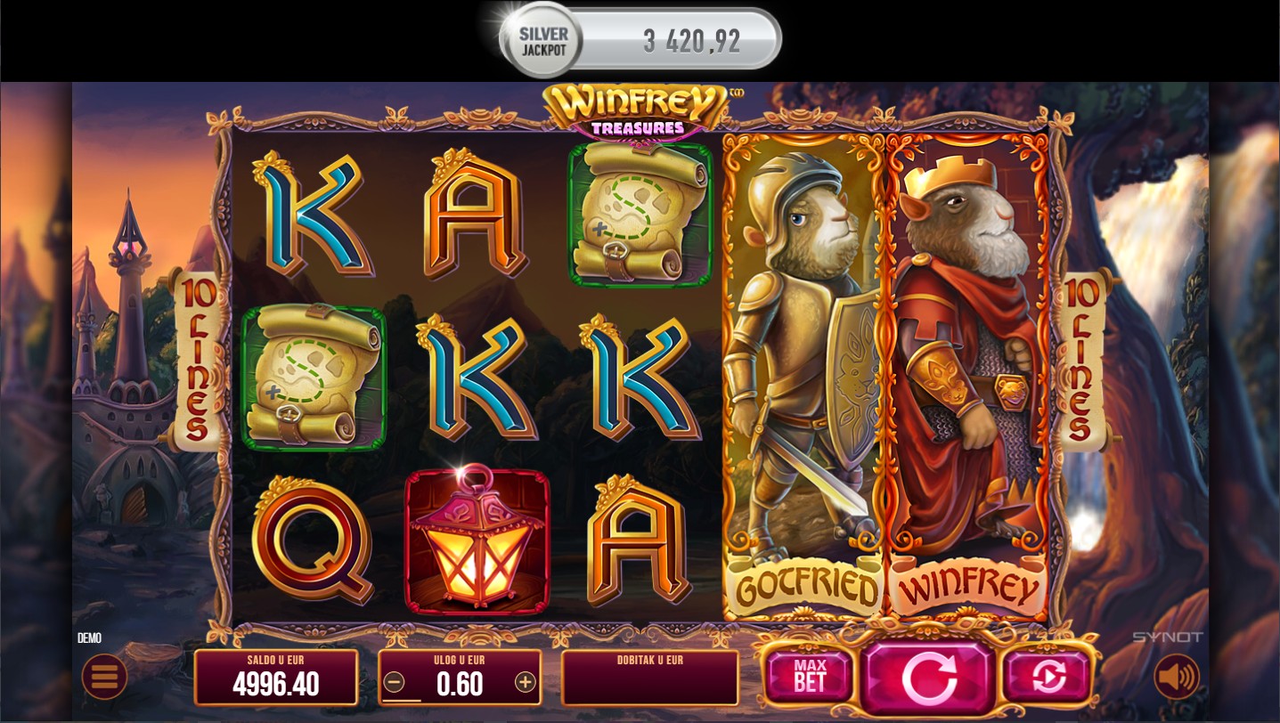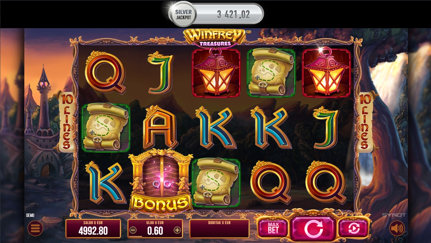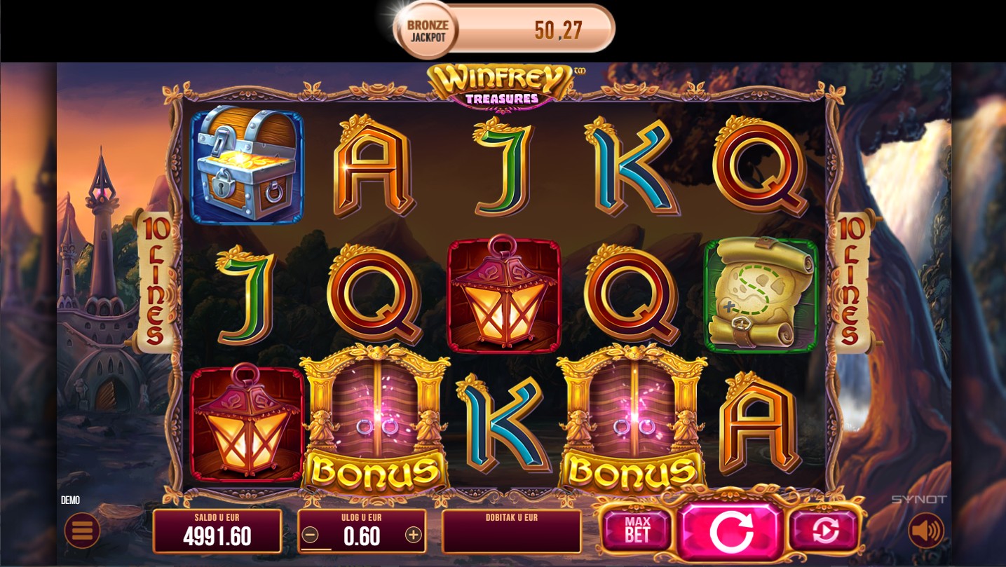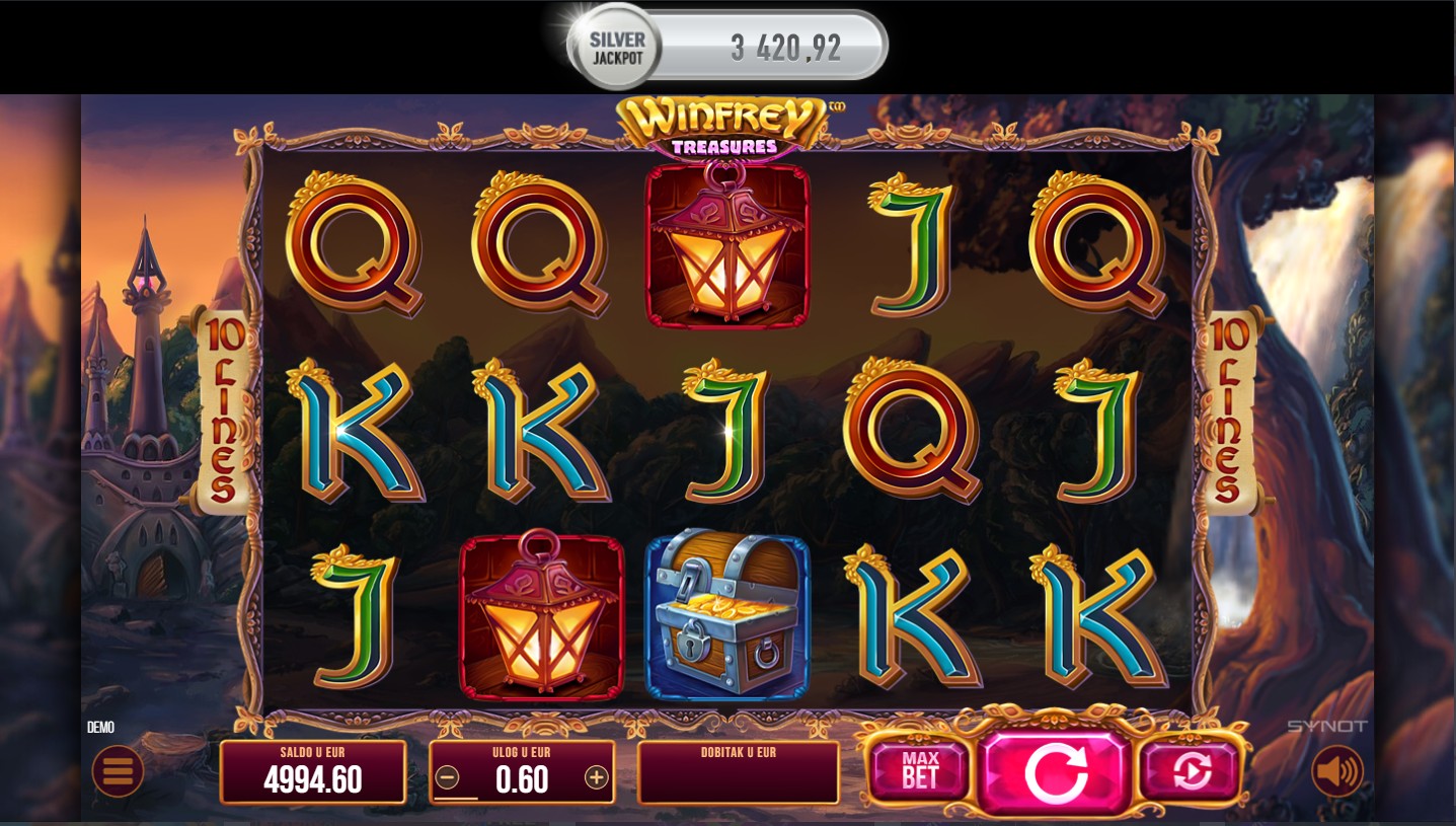 Zakorači u svijet blaga s Winfrey Treasures, slot igrom providera Synot koja te vodi u uzbudljivu avanturu punu tajni i skrivenih nagrada! Svaki spin donosi priliku za otkrivanje dragocjenih simbola i formiranje dobitnih kombinacija, pa čak i osvajanje jackpota. Posebne značajke igre otvaraju dodatne prilike za osvajanje bogatstva i neočekivanih iznenađenja, čineći svaki spin posebnim iskustvom. Množitelji dobitka i besplatne vrtnje samo su neke od zabavnih, moćnih značajki koje ti omogućavaju beskrajnu zabavu.