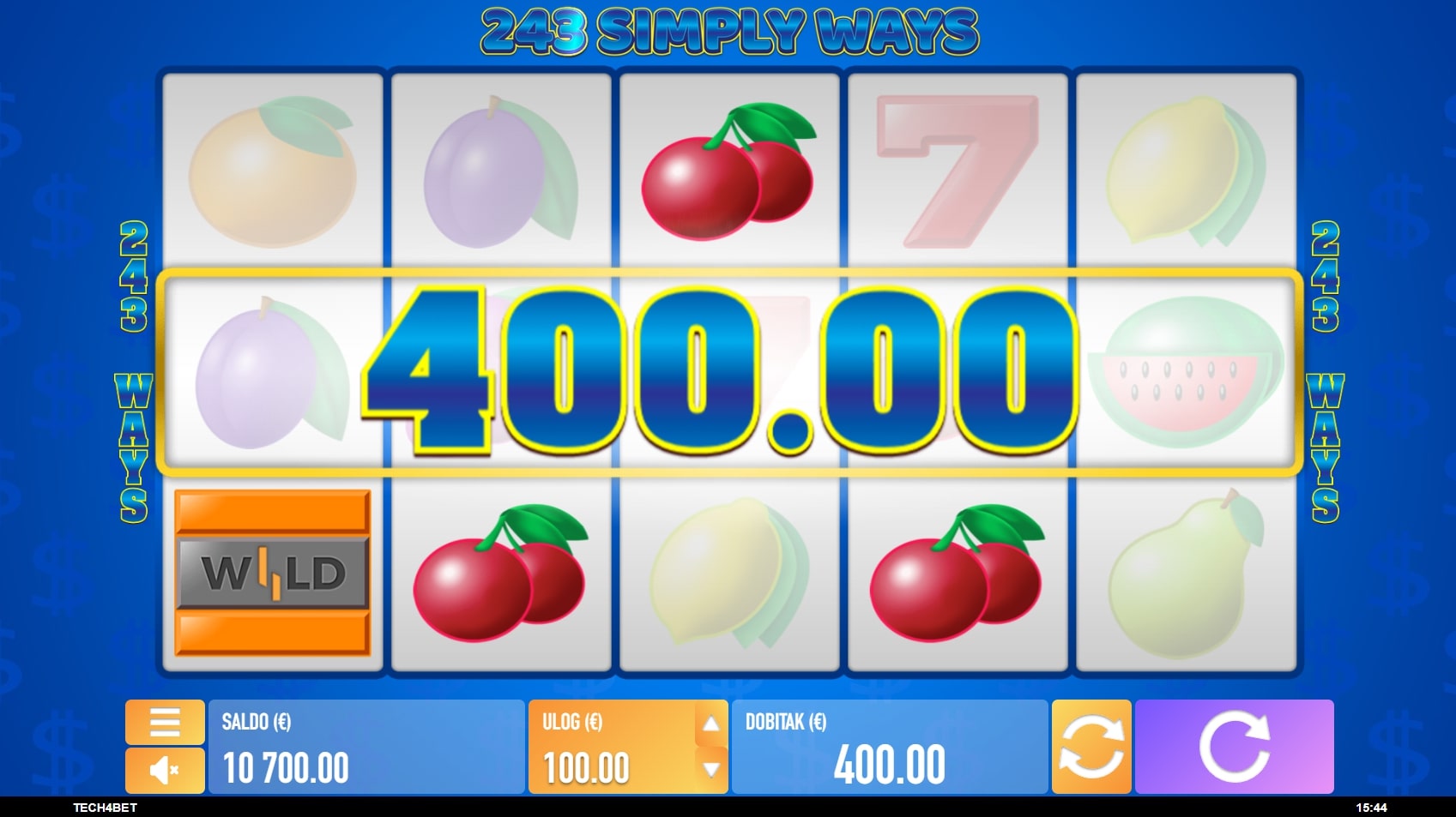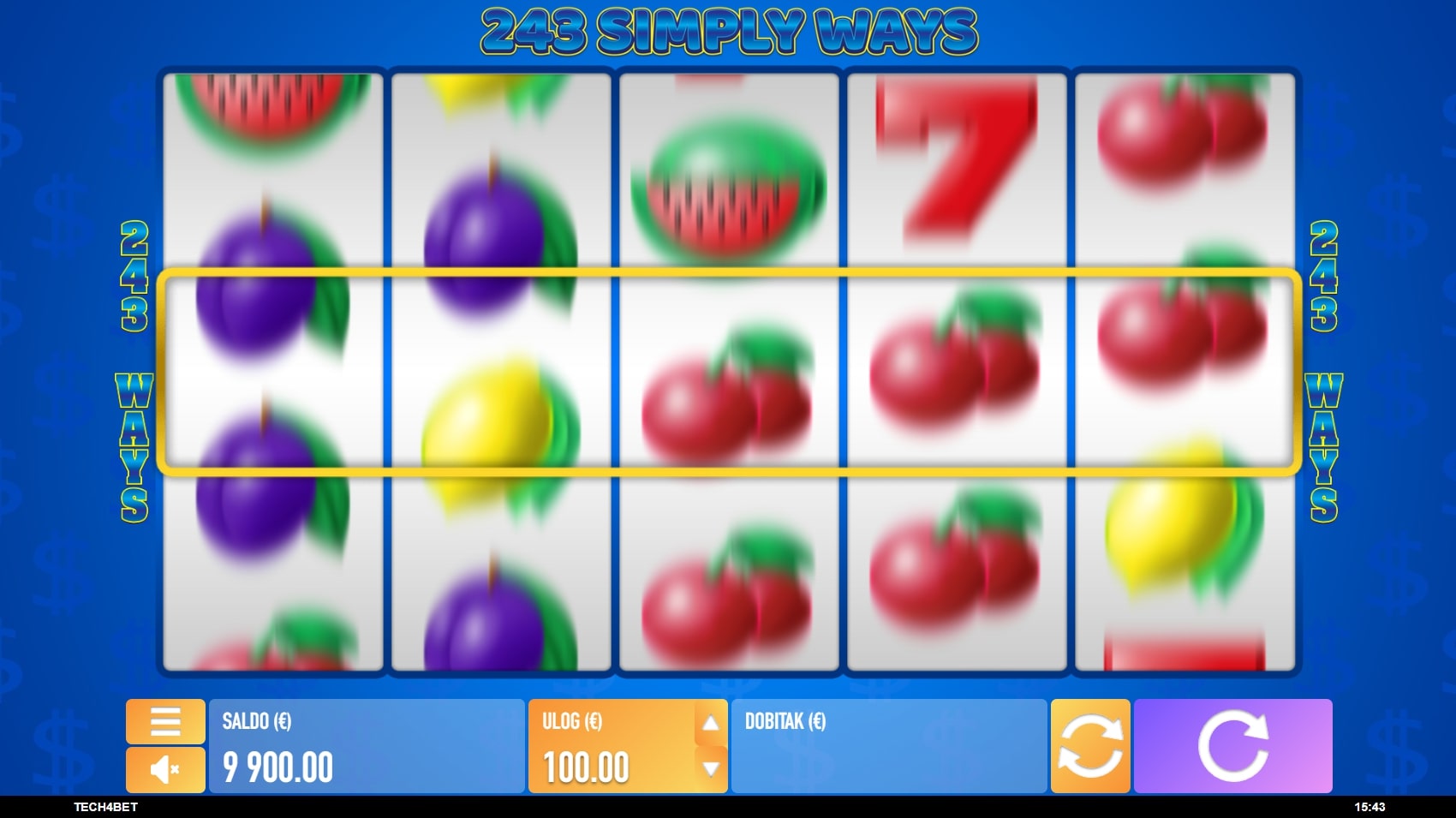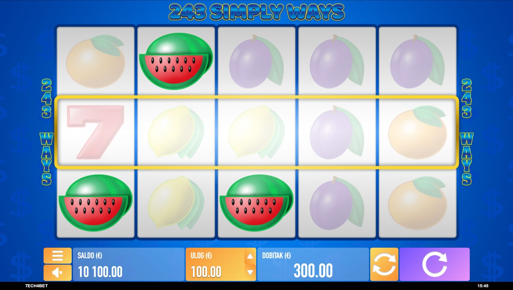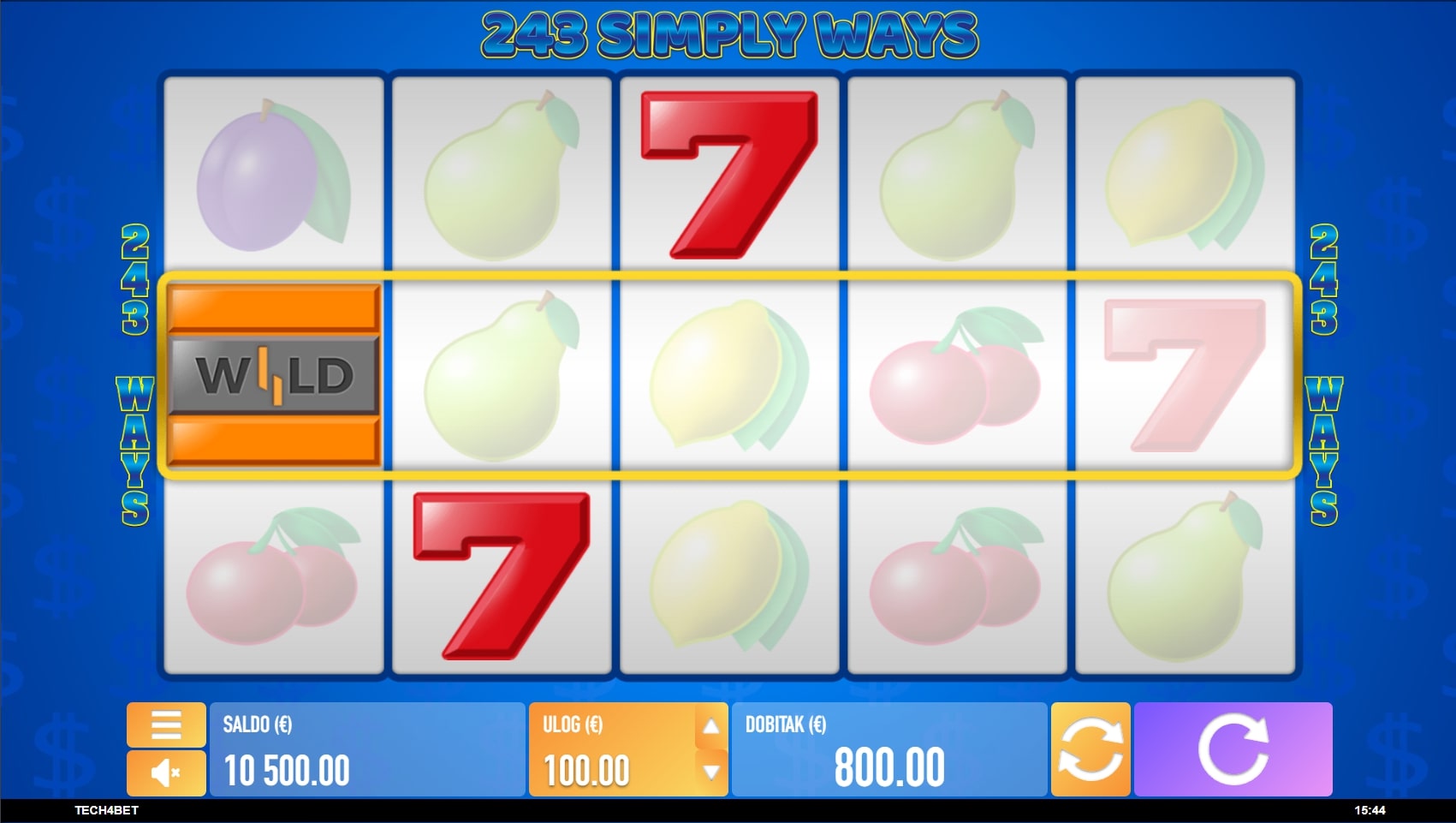 243 Simply Ways slot je igra klasičnog karaktera inspirirana retro slotovima na sreću gdje dominiraju simboli voća i sočni dobici. Tradicionalno najviše isplaćuju sedmice, a zatim slijede lubenice, grožđe pa ostatak voća. Igra uz to sadrži Wild simbole koji mijenjaju druge u potrazi za dobicima, dok srednja rola služi kao portal za svijet besplatnih vrtnji. Zaigraj 243 Simply Ways te osvoji najluđe nagrade!