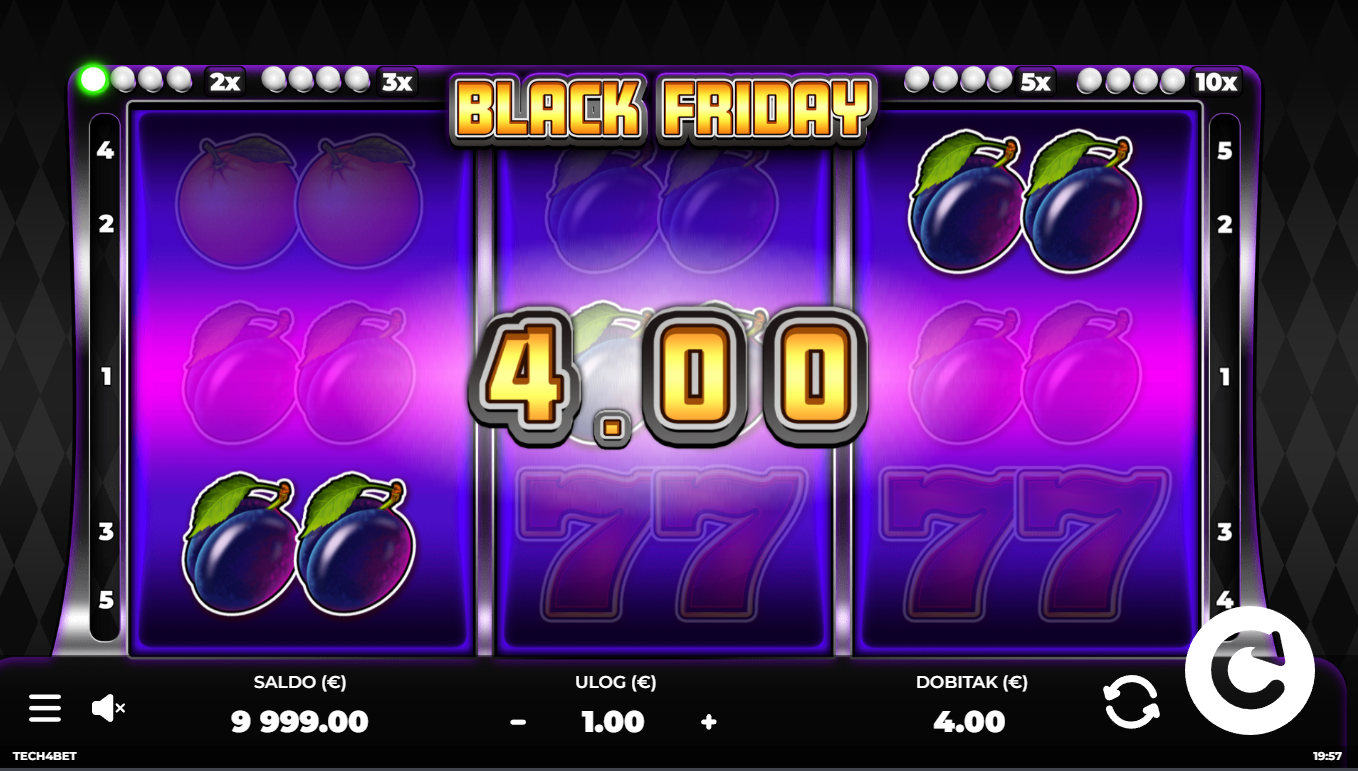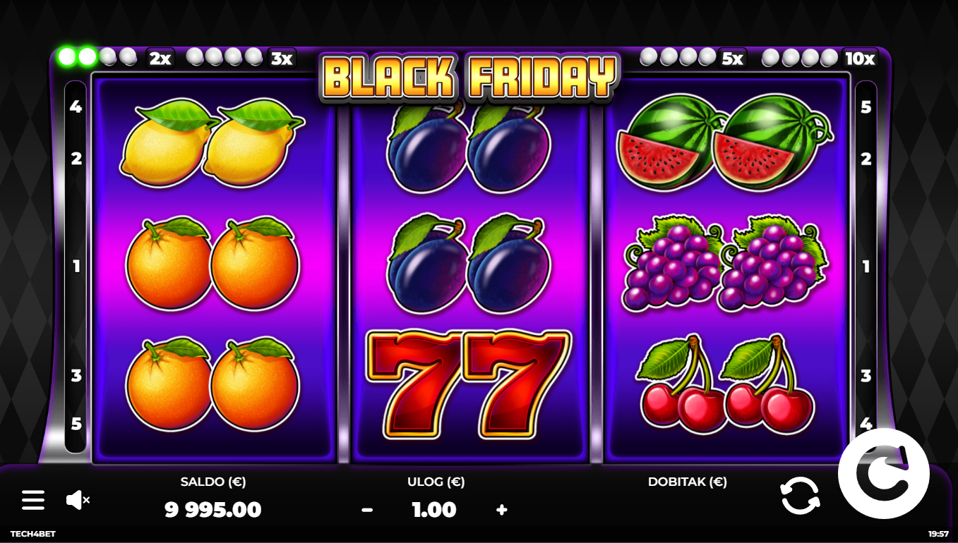 Black Friday ima RTP od 95.62%, što je standardno za Tech4Bet slotove i donosi stabilan povrat tijekom dužeg igranja. Volatilnost je srednja do visoka, što znači da dobici možda ne dolaze često, ali kad se pojave, to može biti mega akcija. Idealno za igrače koji vole osjećaj napetosti i iznenađenja.