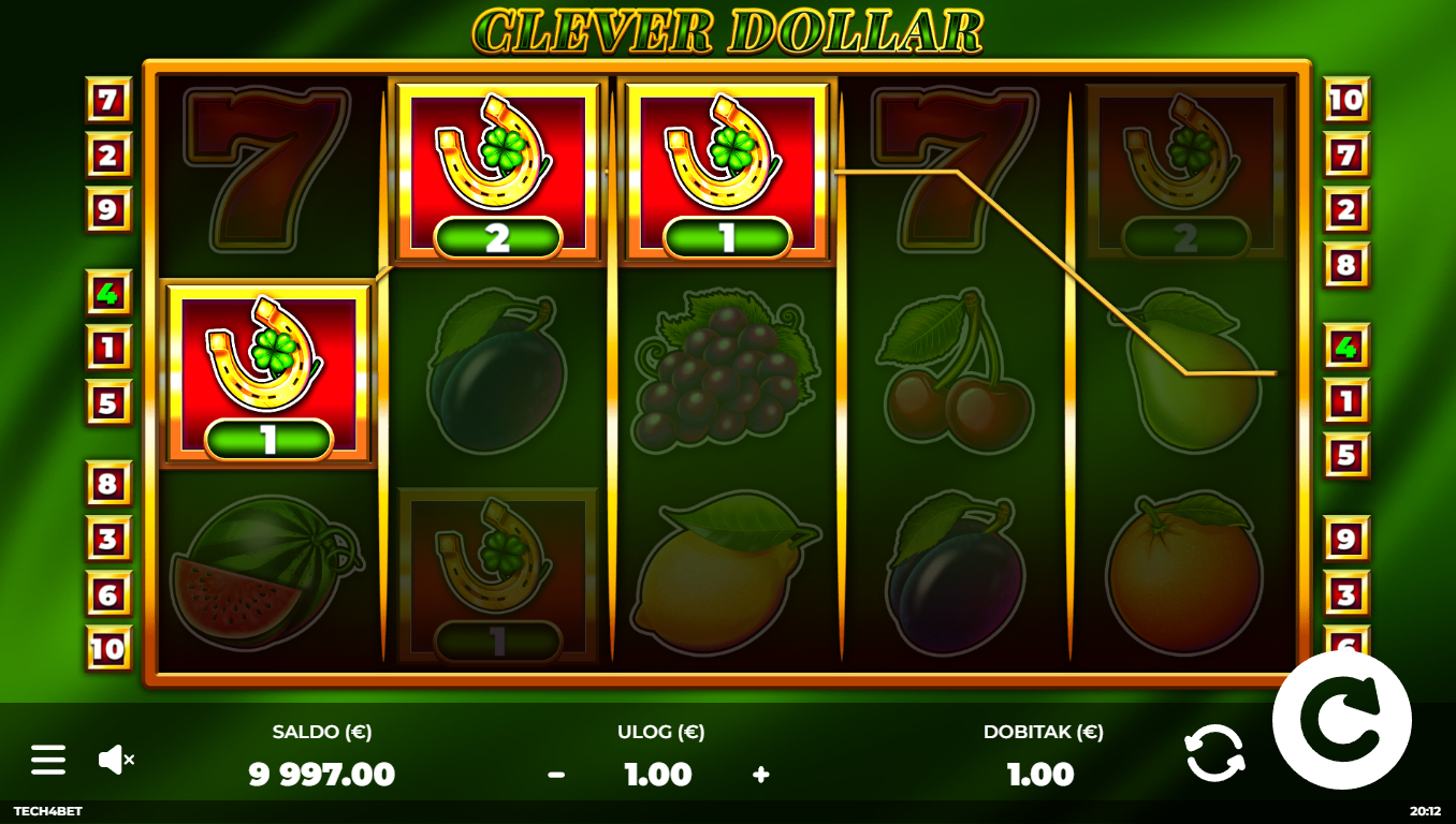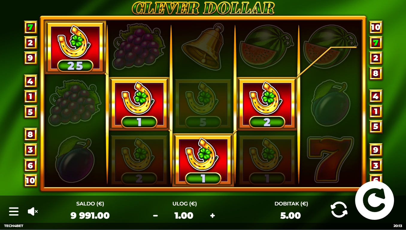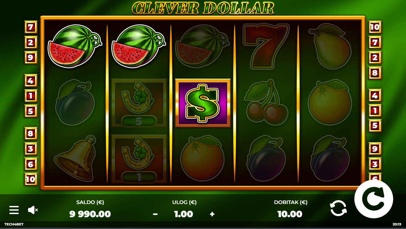 Clever Dollar od Tech4Bet je slot koji spaja humor, brzu akciju i američki money vibe. Dolari lete, a dobici čekaju pravi trenutak. Koluti su puni simbola novca, zlatnih znakova i zabavnih vizuala koji stvaraju osjećaj lakog bogatstva. Igra ima jednostavan, ali vrlo privlačan dizajn koji od prvog spina stvara dojam "ovo će biti moj lucky spin". Sve je upakirano u energičnu, modernu prezentaciju. Ako voliš slotove koji su brzi i ne shvaćaju se preozbiljno — ovaj je pravi smart money move.