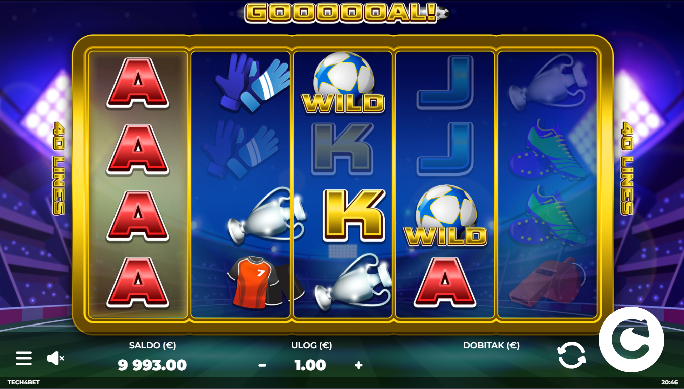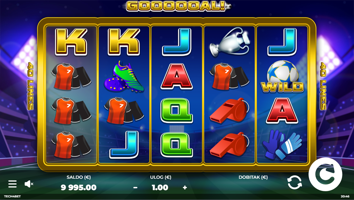 Goooooal! od Tech4Bet je slot koji izgleda kao prava nogometna utakmica, samo što se ovdje navija za dobitke. Koluti su ispunjeni nogometnim simbolima, kopačkama, loptama i stadionima punim navijača. Svaki spin podsjeća na napad prema golu, s napetošću koja raste kako se simboli slažu. Atmosfera je glasna, energična i puna adrenalina, osjećaj je kao da si na terenu. Ako voliš nogomet i voliš pobjeđivati, vrijeme je da zabiješ svoj GOOOOL!