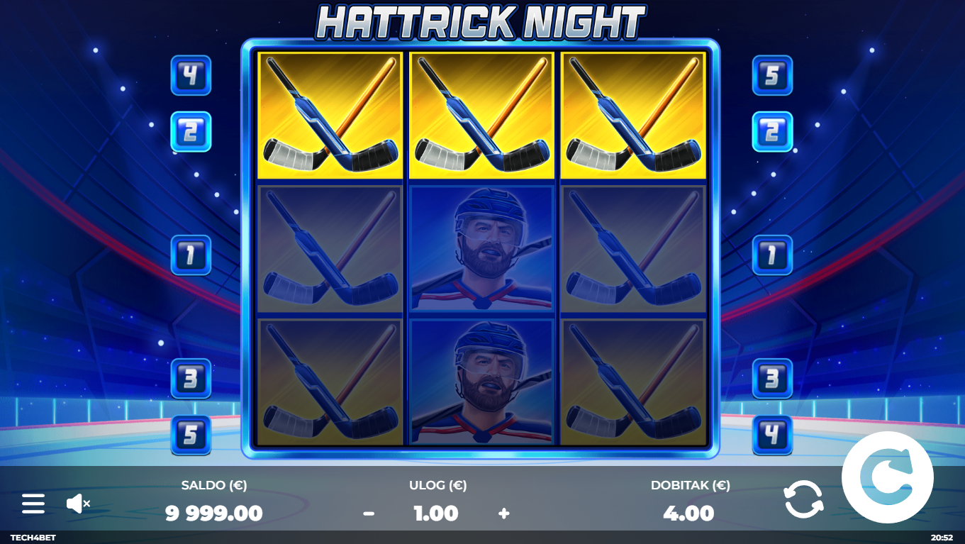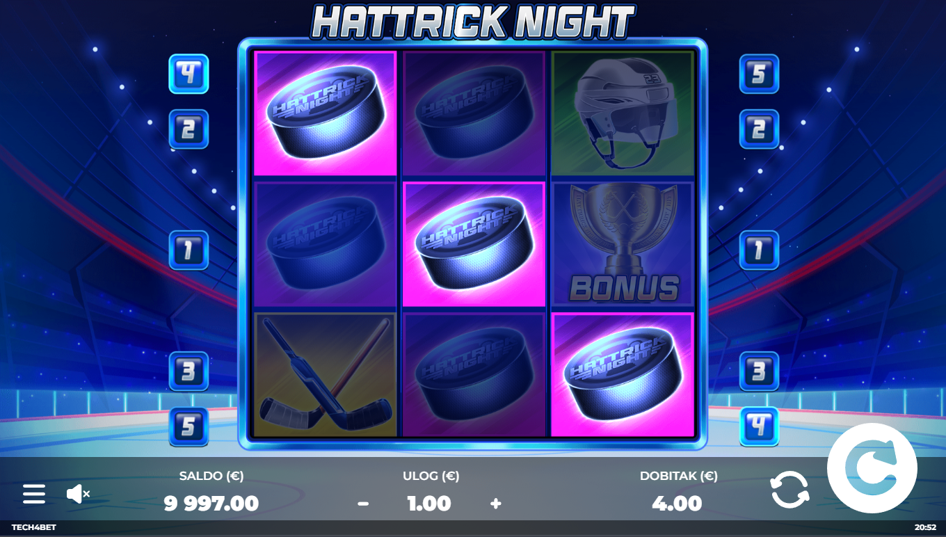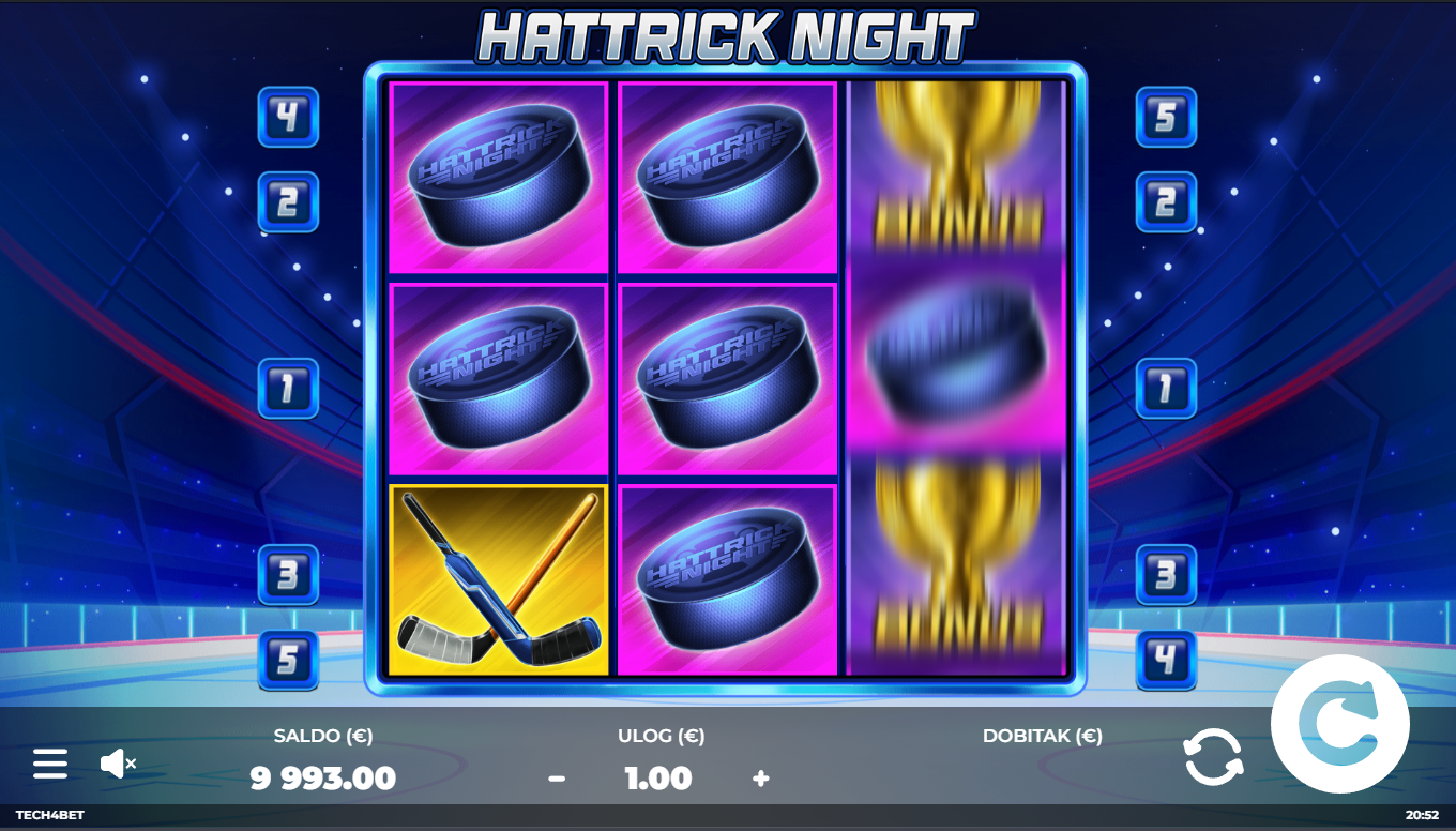 Odaberi iznos uloga, zavrti kolute i pokušaj složiti pobjedničke kombinacije simbola na isplatnim linijama. Wild simbol zamjenjuje druge simbole i pojačava dobitne kombinacije. Posebne funkcije mogu se aktivirati nasumično i donijeti dodatne nagrade. Igra je brza, jasna i idealna za one koji vole akciju bez komplikacija. Svaki spin može postati tvoj hattrick trenutak.