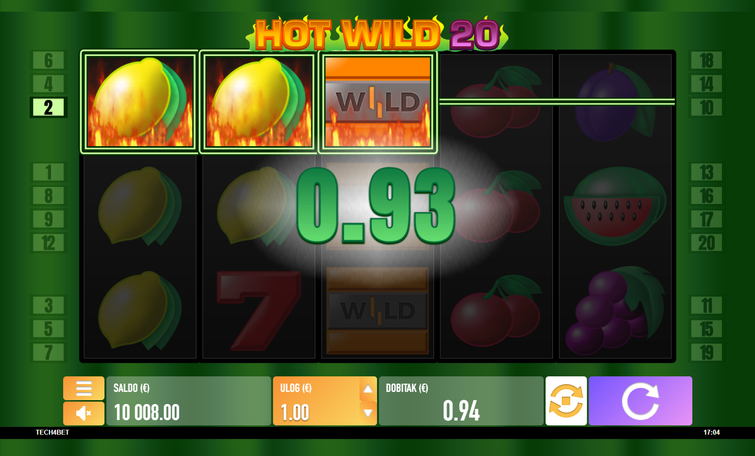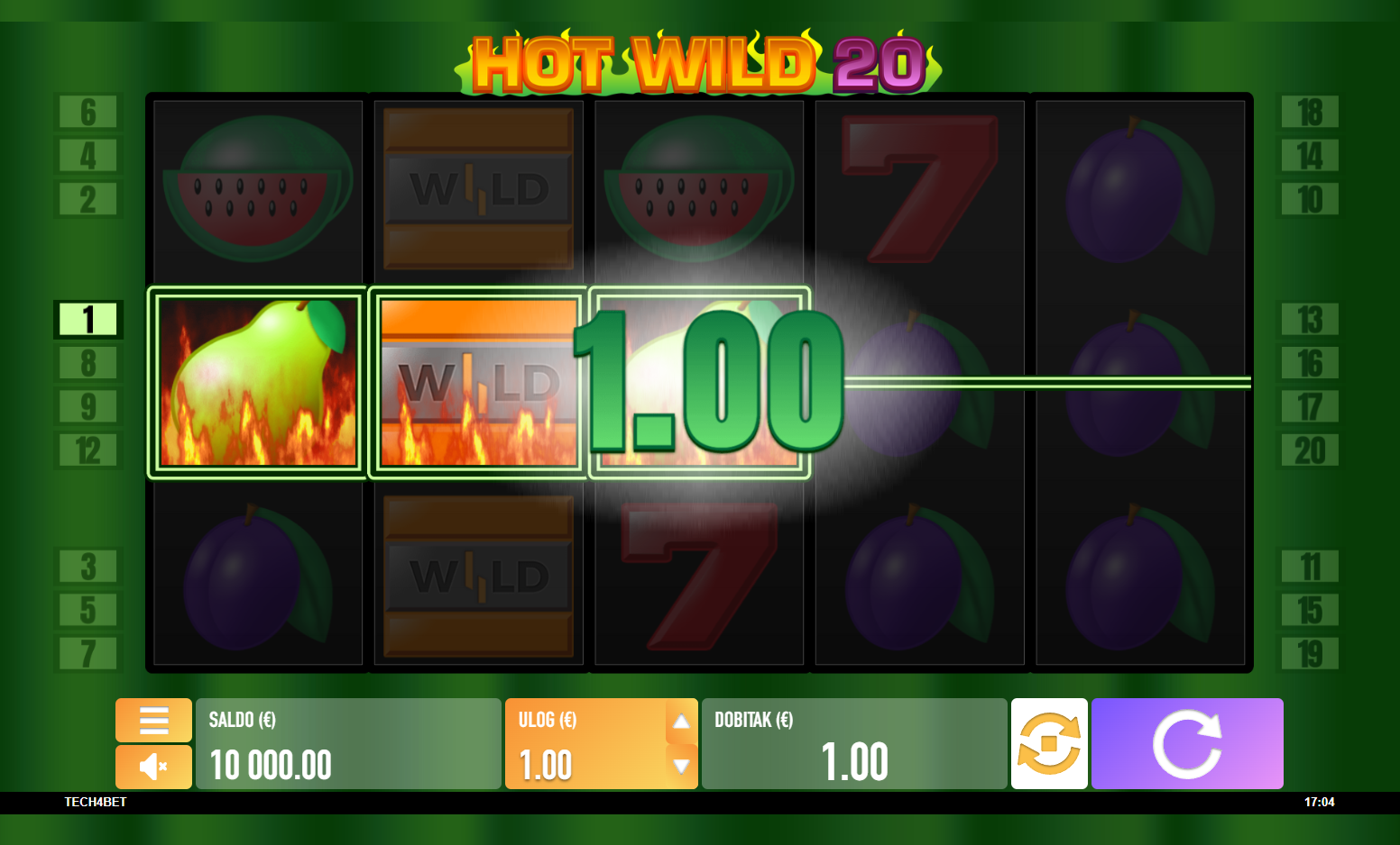 Hot Wild 20 ima RTP od 95%, što osigurava solidne šanse za dobitak tijekom igranja. Srednja volatilnost igre znači da možeš očekivati relativno česte, ali umjerenije dobitke. Ova ravnoteža između rizika i nagrada čini Hot Wild 20 idealnom igrom za igrače koji žele uravnoteženu i uzbudljivu igračku avanturu. Pridruži se sada i iskušaj svoju sreću!