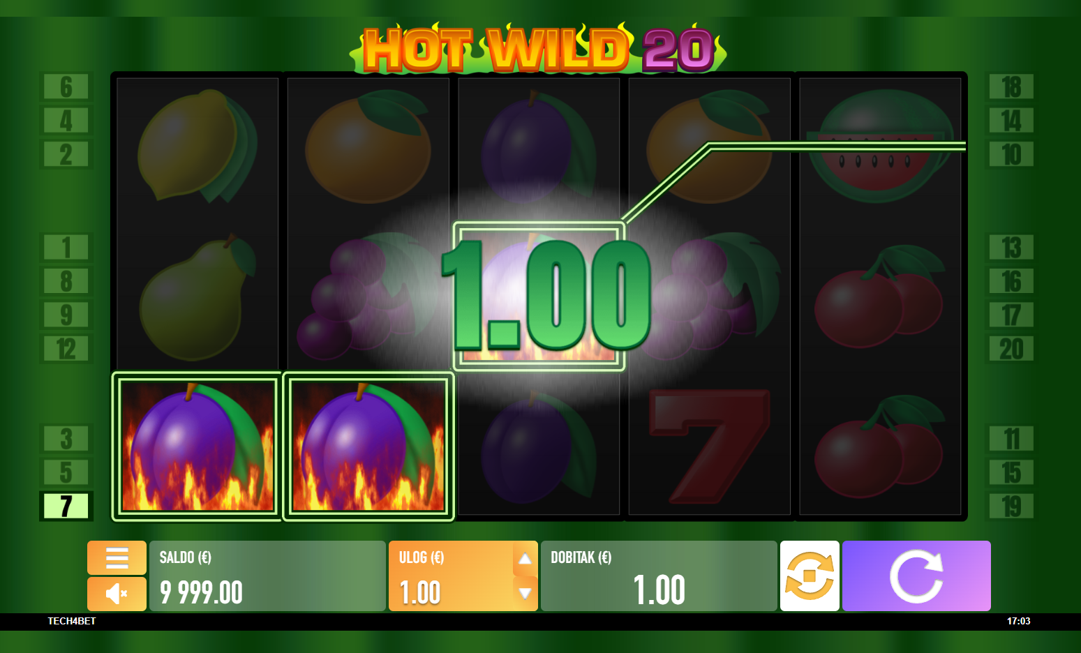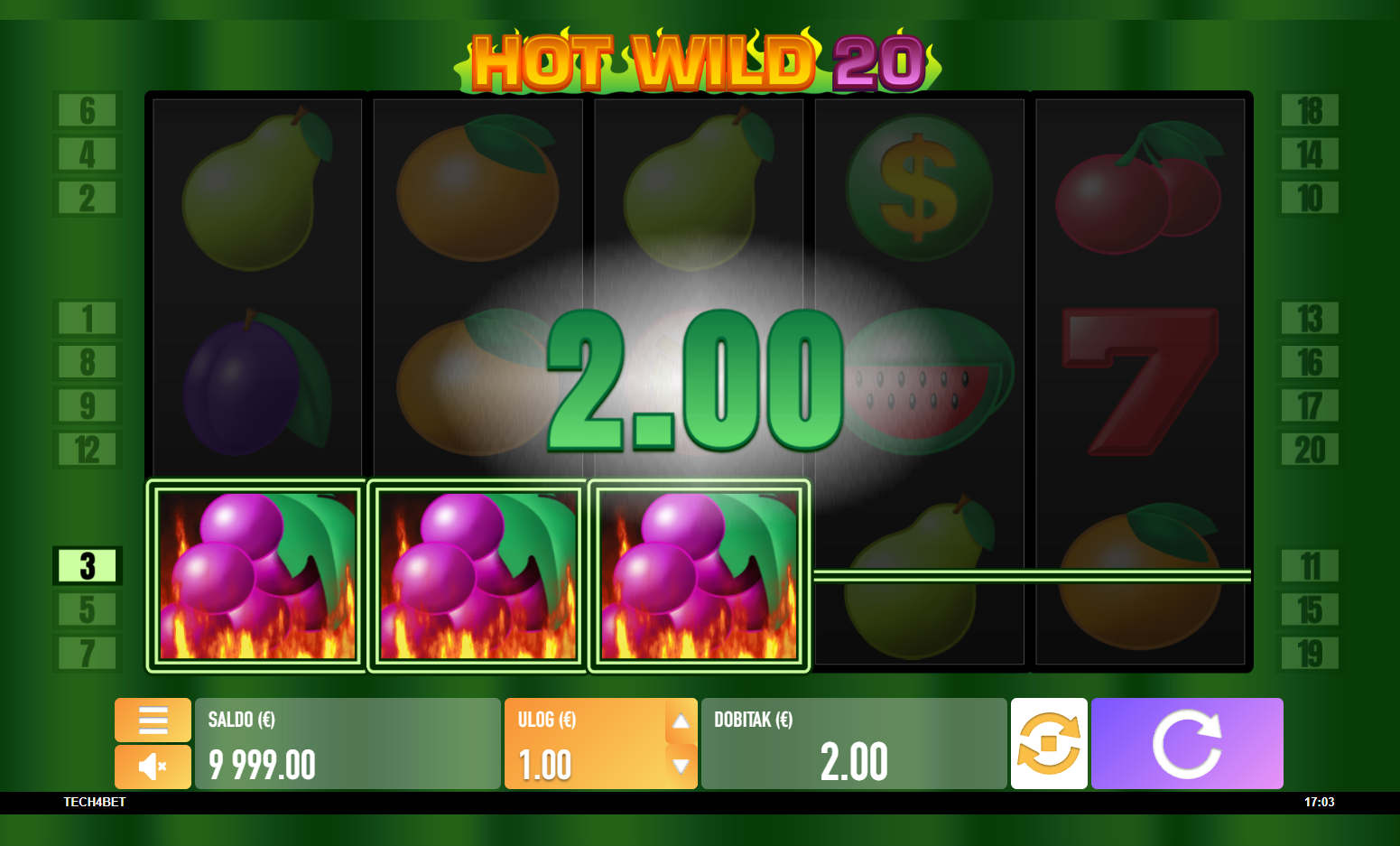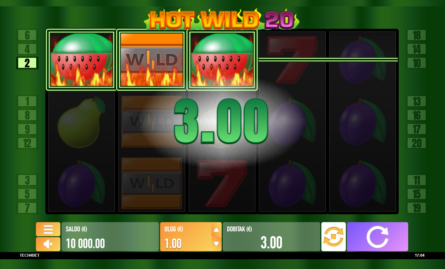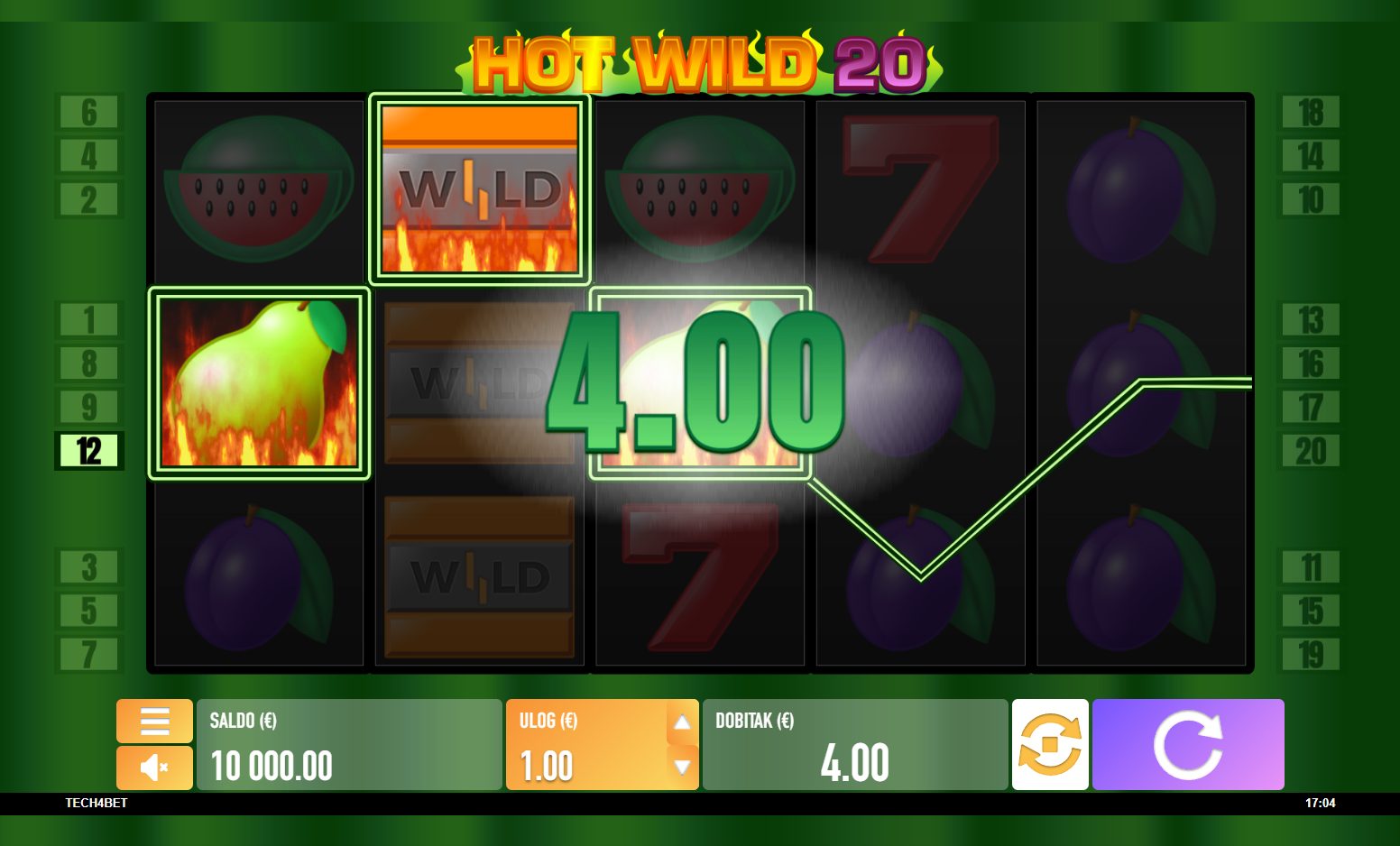 Hot Wild 20 je uzbudljiva igra s pet valjaka i tri utora na