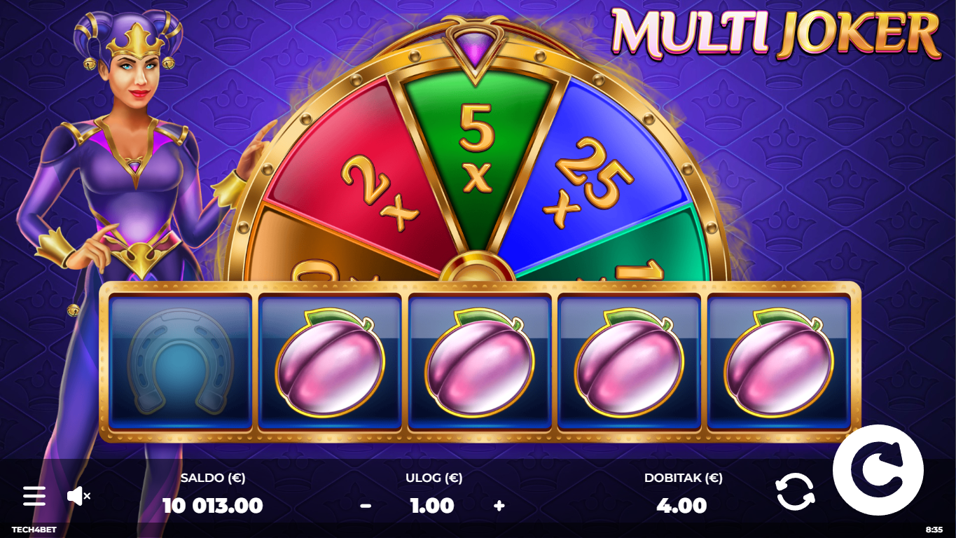 Multi Joker od Tech4Bet je klasični voćni slot s Jokerom u glavnoj ulozi, ali ovaj put, puta više. Očekuj brzu akciju, jarke boje i Joker koji stalno upada na scenu i pretvara obične vrtnje u velike pobjede. Dizajn kombinira retro izgled s modernim efektima, što igru čini vizualno čistom i jako ugodnom za igranje. Joker simbol zna iznenaditi baš kad treba. Ako voliš tradicionalne slotove koji znaju biti jako isplativi, Joker je tvoj čovjek.