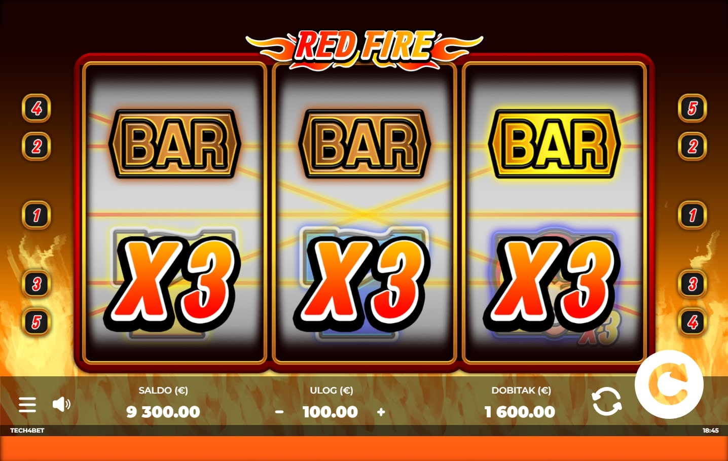 Red Fire slot je igra inspirirana retro igrama na sreću. Igra ipak ne sadrži klasične simbole voća, već su oni zamijenjeni raznim polugama i sedmicama. Ono što igru čini posebnom je što poluge i sedmice isplaćuju dobitke bez obzira na boju, a ako su iste boje onda se dobici množe do fantastičnih razina. Igra uz to sadrži Wild i Scatter simbole koji mijenjaju druge simbole, odnosno osvajaju igraču besplatne vrtnje. Zaigraj Red Fire te osvoji super nagrade!