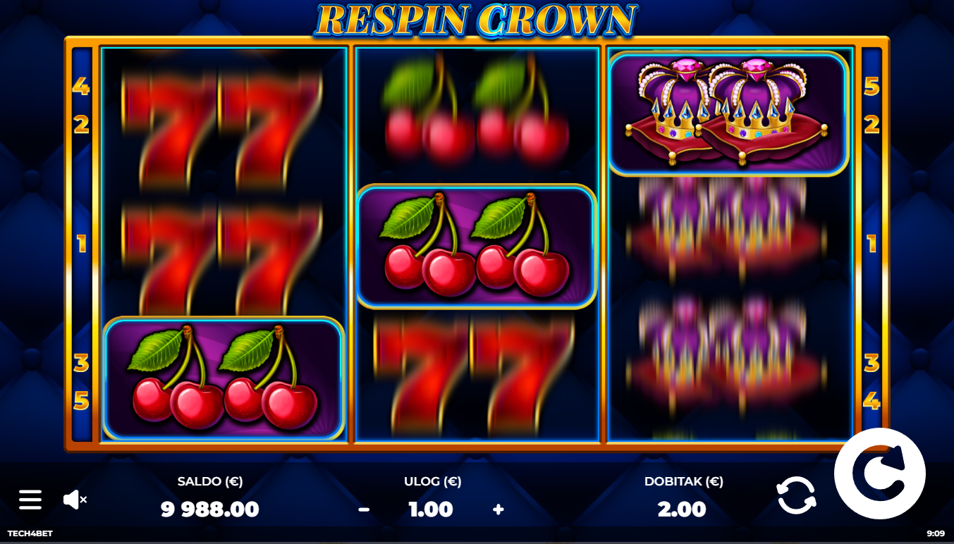Odaberi ulog, zavrti kolute i pokušaj složiti dobitne kombinacije simbola na isplatnim linijama. Simbol krune je ključ jer kada padne u pravoj kombinaciji, aktivira Respin Crown funkciju, gdje se određeni koluti ponovno vrte za dodatnu šansu. Wild simbol zamjenjuje druge simbole i može pomoći u stvaranju većih isplata. Mehanika je jednostavna, pregledna i idealna za brzu igru. Svaki spin može postati kraljevski pogodak.