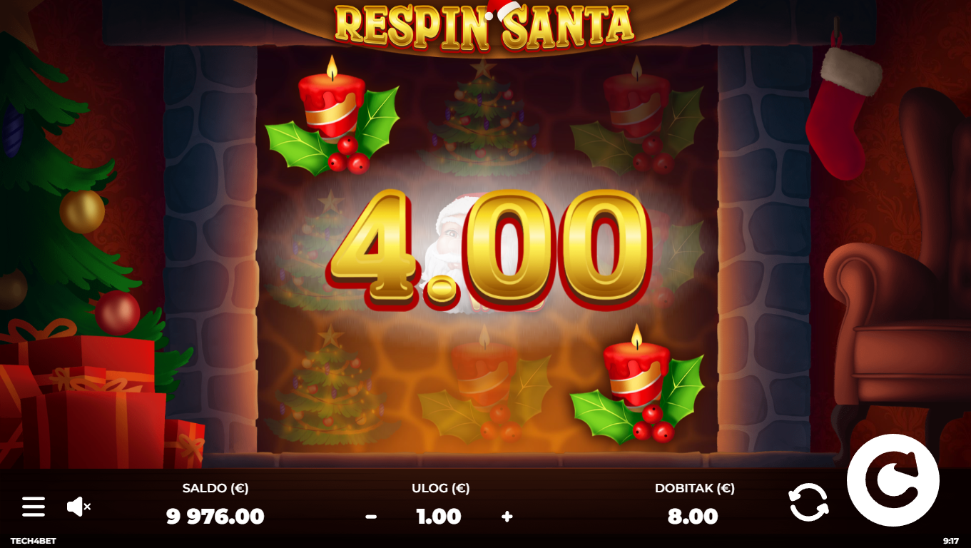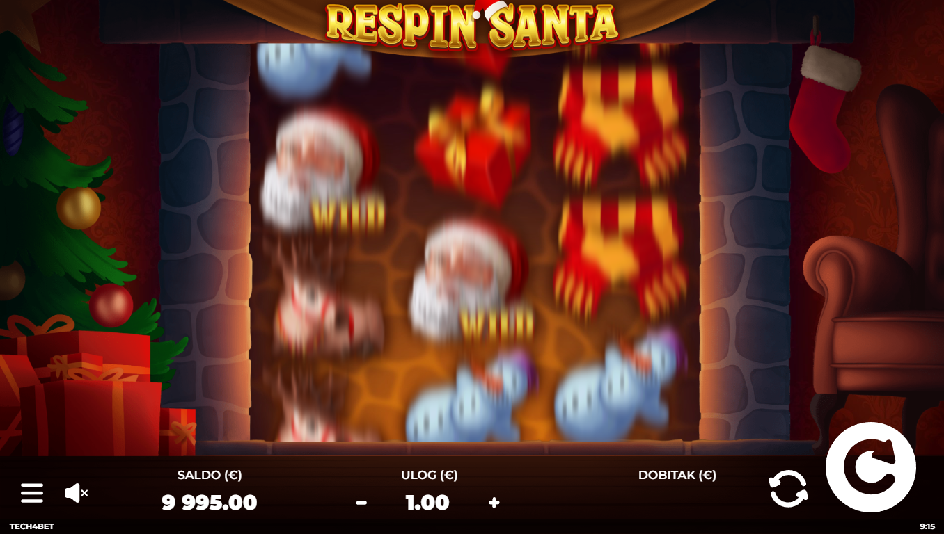Respin Santa od Tech4Bet donosi božićnu atmosferu ravno na kolute: snijeg, lampice, darovi i naravno, veseli Djed Božićnjak. Igra izgleda kao mini blagdanski film: topla grafika, zvončići i osjećaj da se svakog spina može dogoditi nešto posebno. Santa se pojavljuje iznenada i može pokrenuti respin, dajući ti još jednu priliku za dobitak bez novog uloga. Igra je lagana, zabavna, puna pozitivne energije i odlična za igrače koji vole jednostavne slotove. Ako vjeruješ u božićna iznenađenja, Respin Santa će te razveseliti.