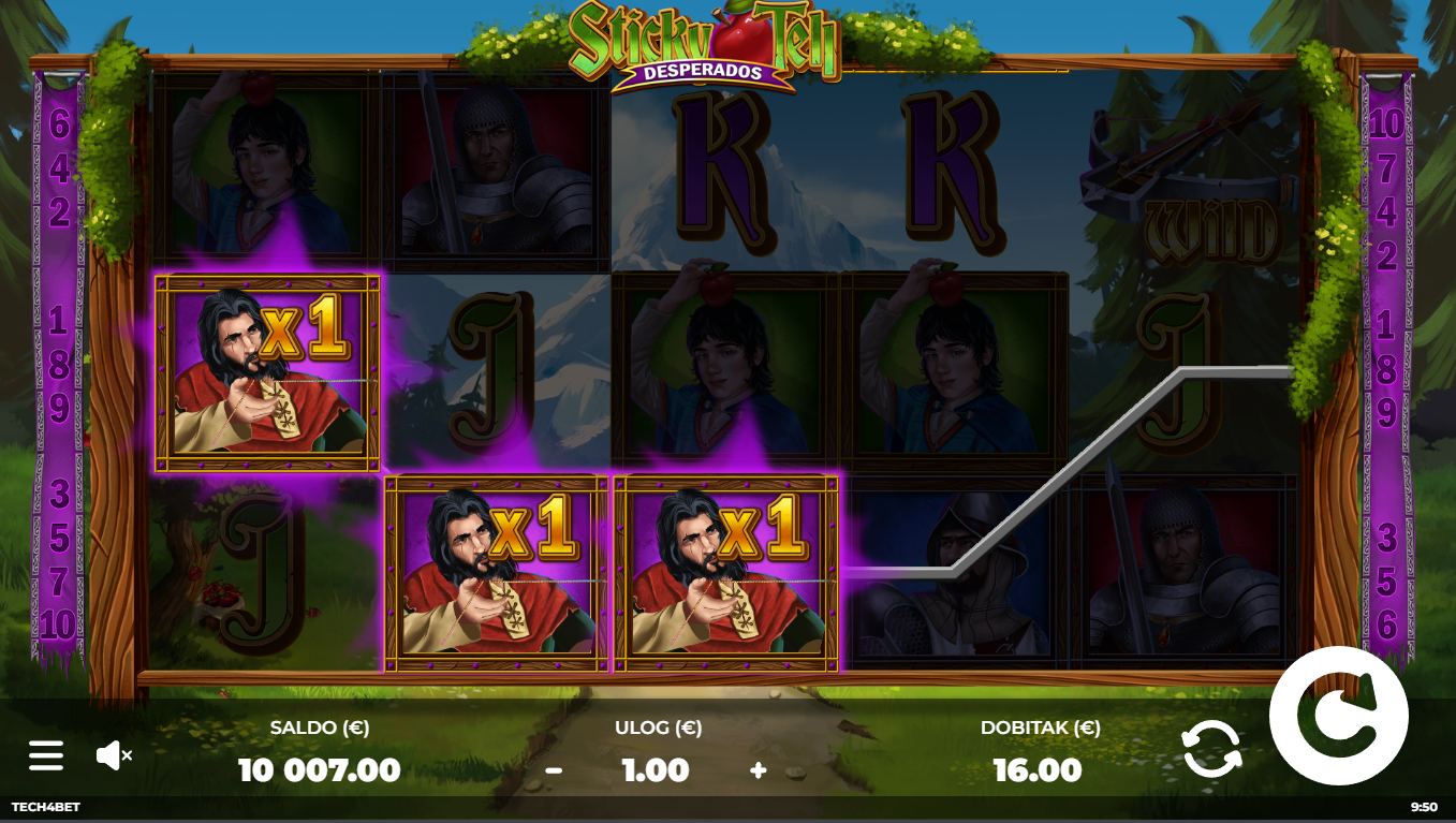 Sticky Tell ima RTP od 95.10%, što je dobar povrat za ovakav stil igre. Volatilnost je srednje do visoka što znači da ne dobivaš baš u svakom spinu, ali kada se sticky simboli zalijepe, potencijal dobitka drastično raste. Ovo je igra za one koji vole rizik i iznenadne preokrete.