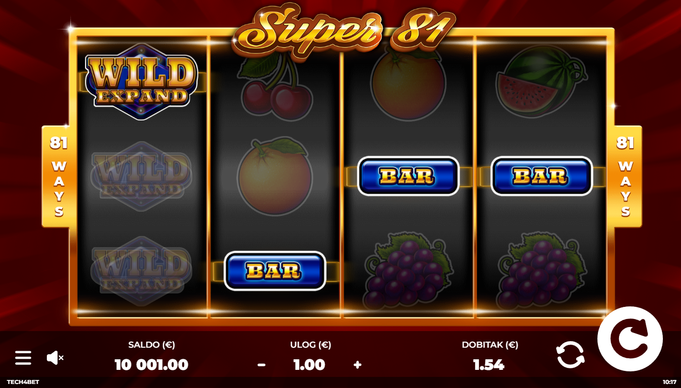Ne, Super 81 nema progresivni jackpot, ali česte kombinacije i wildovi mogu donijeti odlične isplate.
