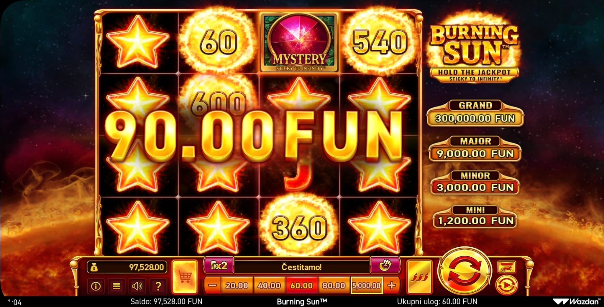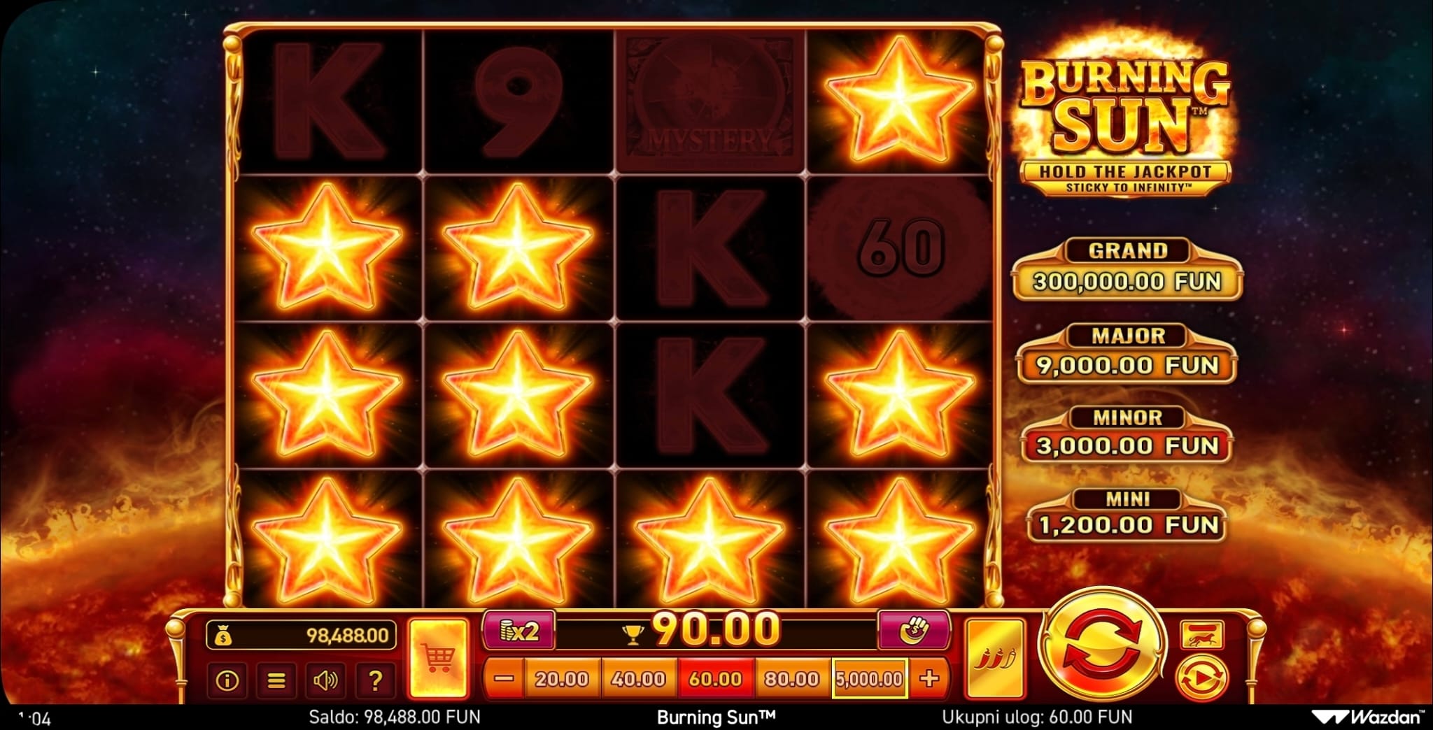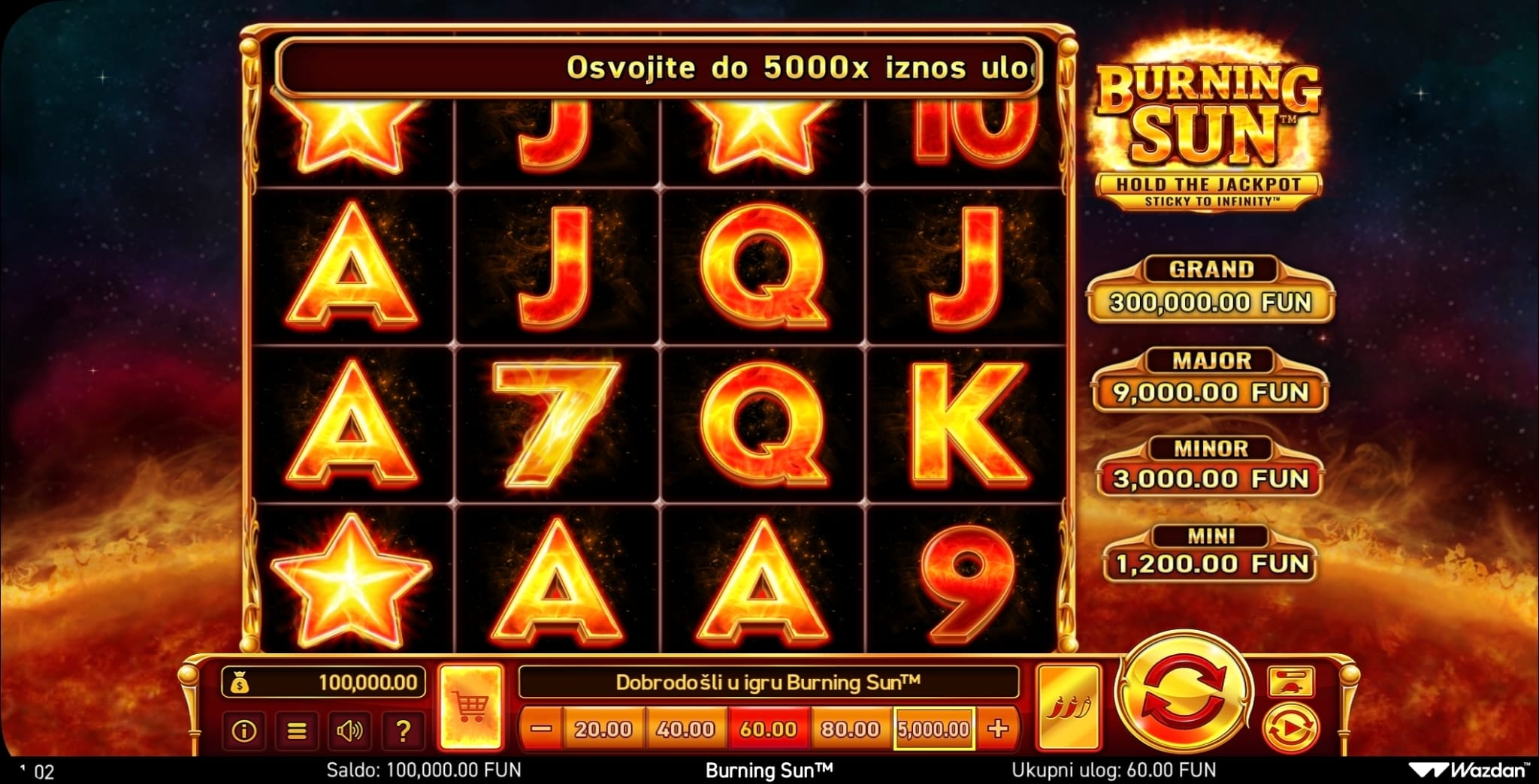 Wazdan. Smještena ispred goleme goruće zvijezde, ova vas igra uvodi u kozmičko putovanje s 4x4 mrežom i jedinstvenim