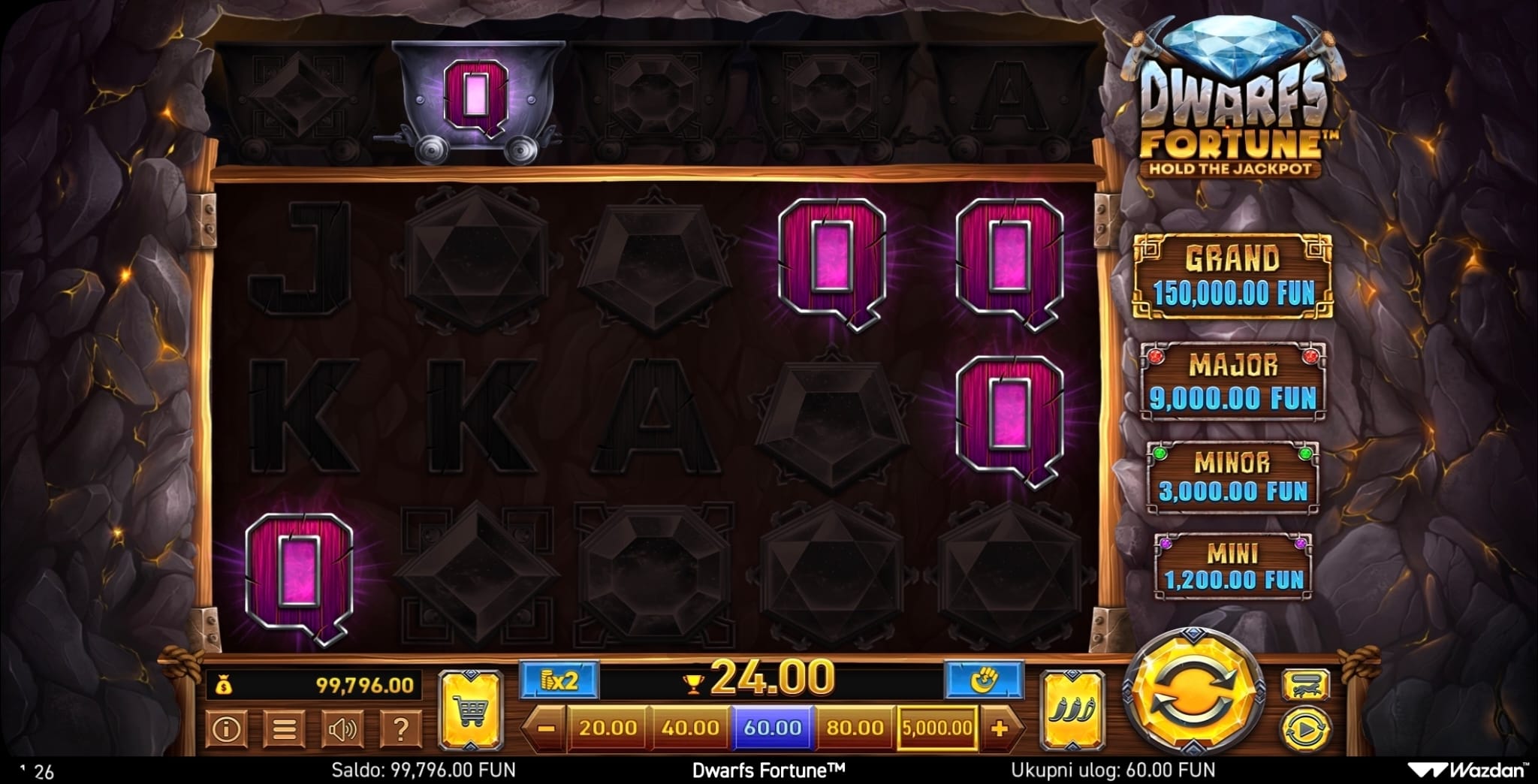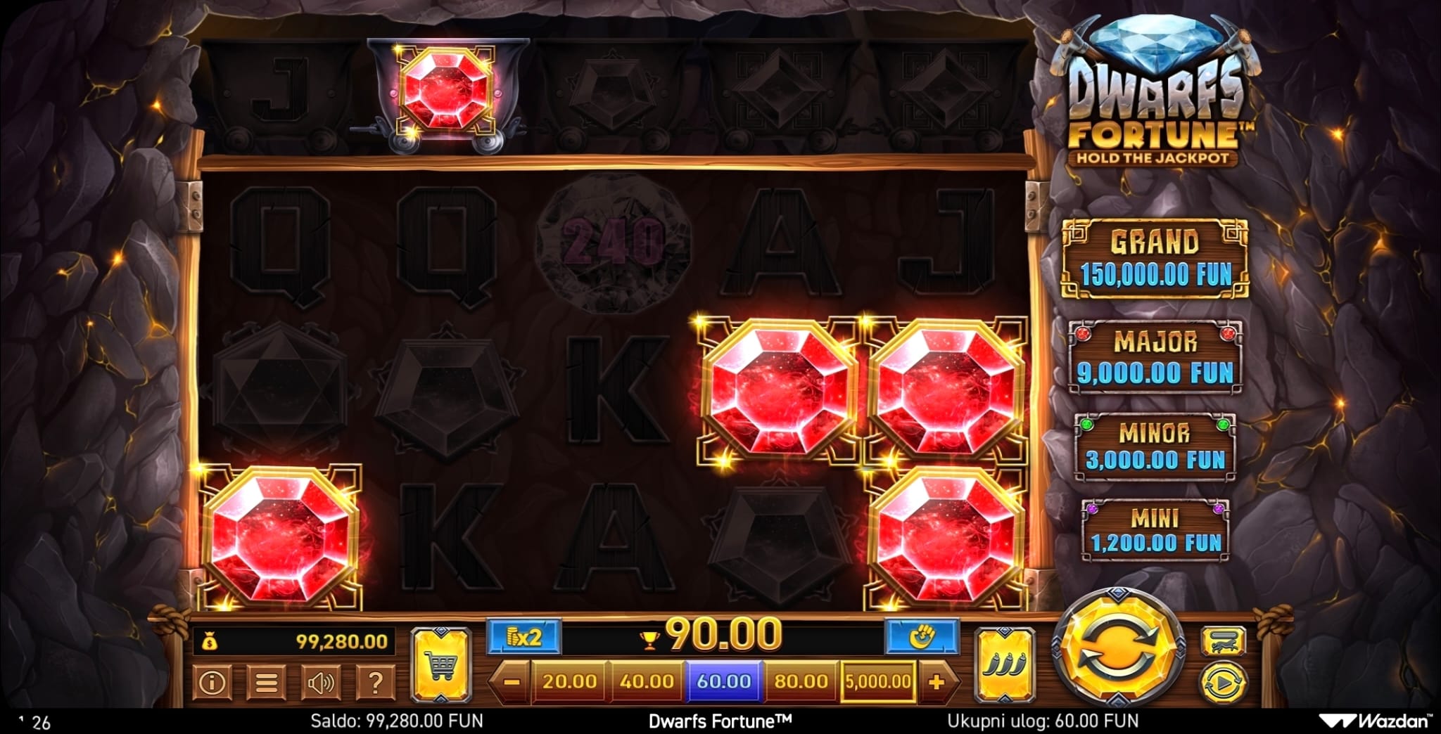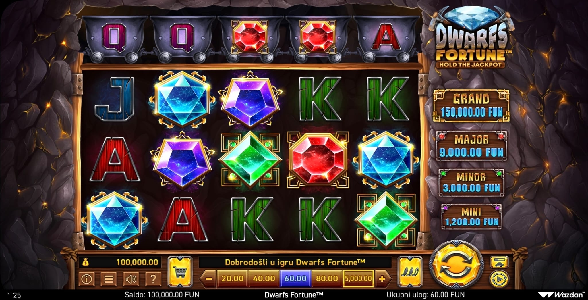 Wazdan. Ovu igru krase živopisni vizuali patuljaka i svjetlucavog blaga, a odvija se na jedinstvenoj 5x3 mreži s posebnim gornjim redom koji donosi posebne simbole. Zahvaljujući