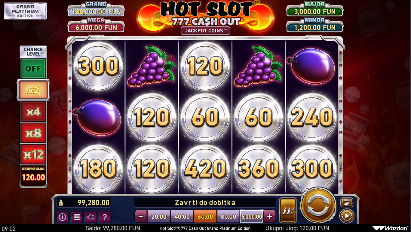 4. Koji su minimalni i maksimalni ulozi u igri Hot Slot 777 Cash Out Grand Platinum Edition?