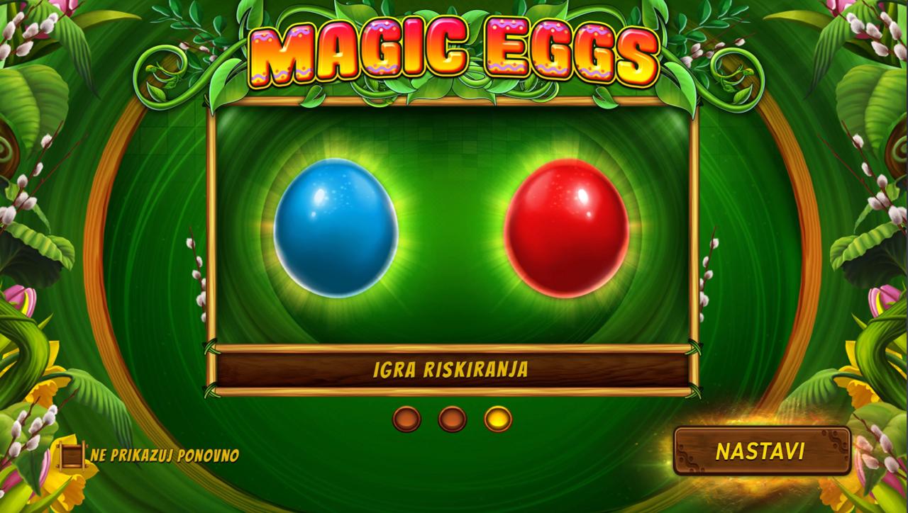 Magic Eggs igra se na 3 role gdje je cilj složiti iste simbole na aktivnim dobitnim linijama kako bi ostvario dobitak. Posebni simboli donose veće nagrade, dok dodatne opcije unutar igre mogu povećati osvojeni iznos. Postavi željeni ulog i zavrti role kako bi osvojio slatke nagrade!