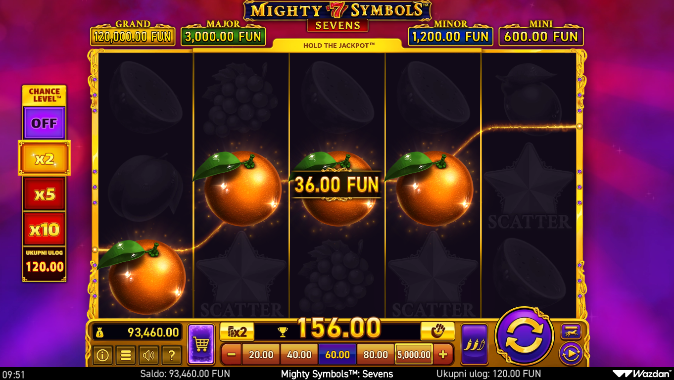 Zavrti valjke i ciljaj velike 7-ice i posebne Mighty simbolike koje se šire preko koluta kako bi stvorile mega dobitke. Posebni simboli aktiviraju dodatne funkcije poput proširenja simbola, multiplikatora ili spajanja većeg broja istih simbola na ekranu. Igra je jednostavna za razumjeti, ali često iznenađuje neočekivanim vizualnim boom efektima kad Mighty simbol prekrije veći dio mreže. Cilj je dobiti što više premium 7-ica i iskoristiti njihovu moć za maksimalne nagrade. Savršeno za igrače koji vole velike simbole i još veće dobitke.