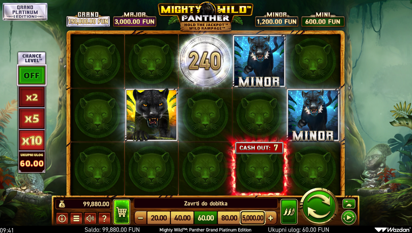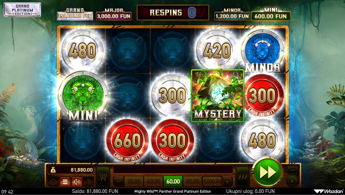 Mighty Wild™: Panther Grand Platinum Edition odvodi te u mističnu džunglu obasjanu hladnim platinastim sjajem, gdje pantera dominira kao simbol snage, misterije i velikih nagrada. Ovo Platinum izdanje izgleda luksuznije i sofisticiranije od ostalih verzija, s platinastim efektima, čistim kontrastima i premium animacijama. Svaki spin djeluje napeto i ekskluzivno, savršeno uklopljen u Wazdanovu Grand seriju. Ako voliš divlju temu, ali u premium, metalik stilu, ovo je vrh ponude.